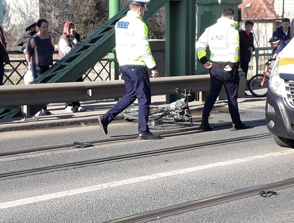 Potrivit primelor informaţii, o femeie care se deplasa sprijinită de bicicletă a schimbat brusc direcţia de mers, fiind lovită de o motocicletă care circula regulamentar.