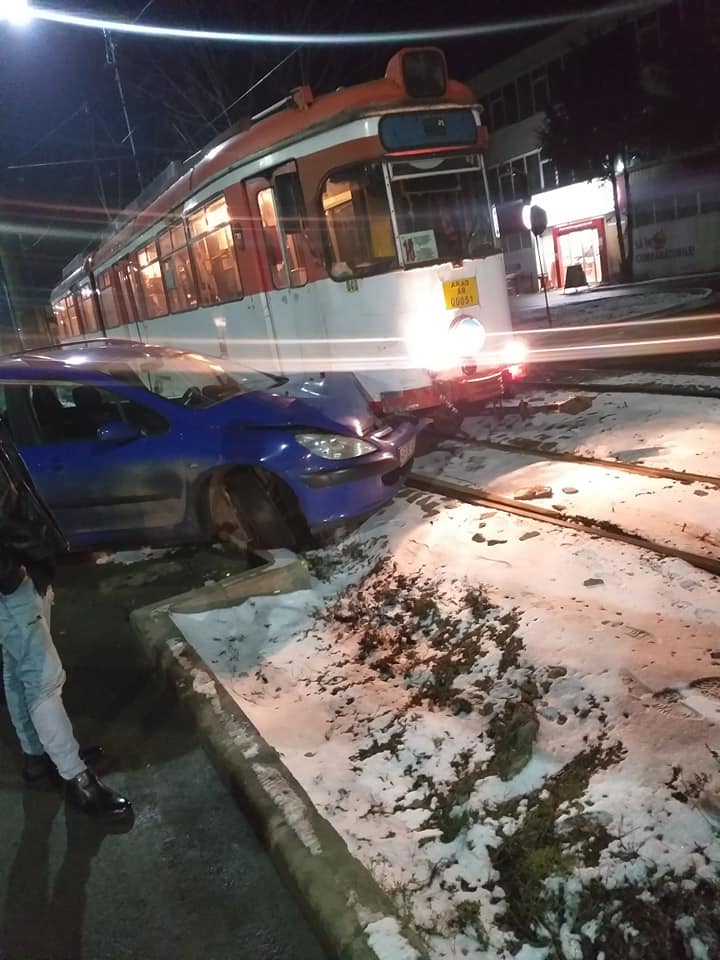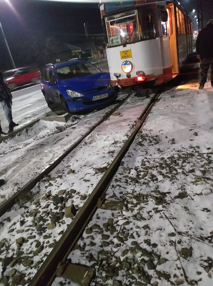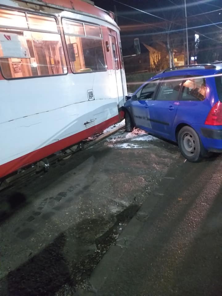 Accidentul s-a produs în momentul în care maşina a încercat să intre în parcarea supermarketului Profi, din Confecţii, peste liniile de tramvai, şi a fost lovită de mijlocul de transport în comun.
