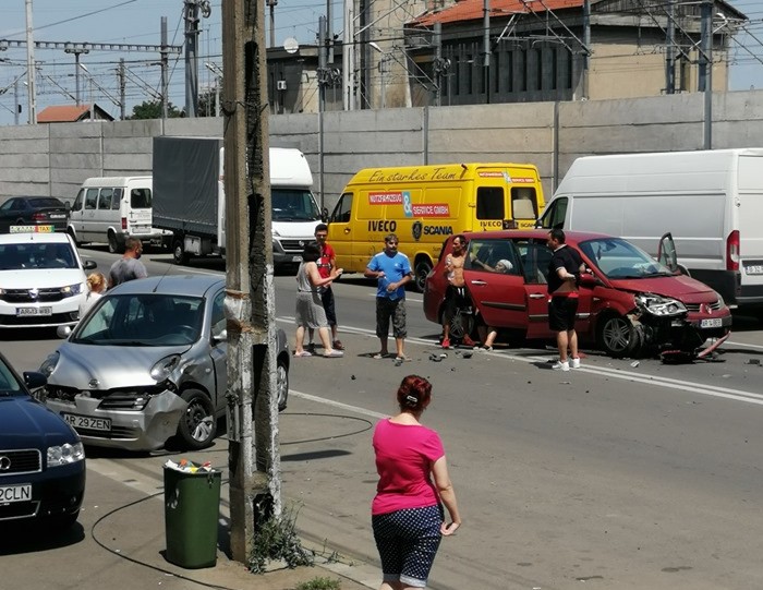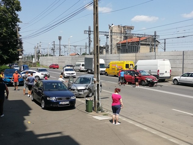 Două mașini au fost avariate serios în urma unui accident care a avut loc astăzi, la orele prânzului, pe strada 6 Vânători.