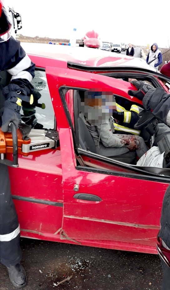 În aceste momente intervine un echipaj de descarcerare a Detașamentului Ineu și SAJ.