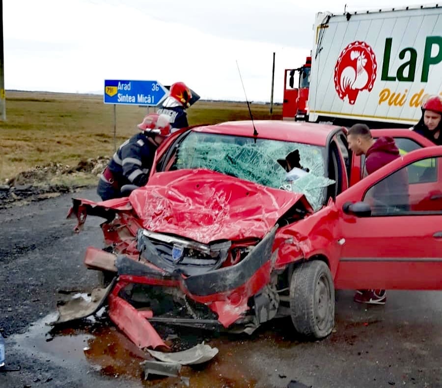 Un accident rutier a avut loc în urmă cu puțin timp între Zărand şi Sintea Mică, pe DJ792.