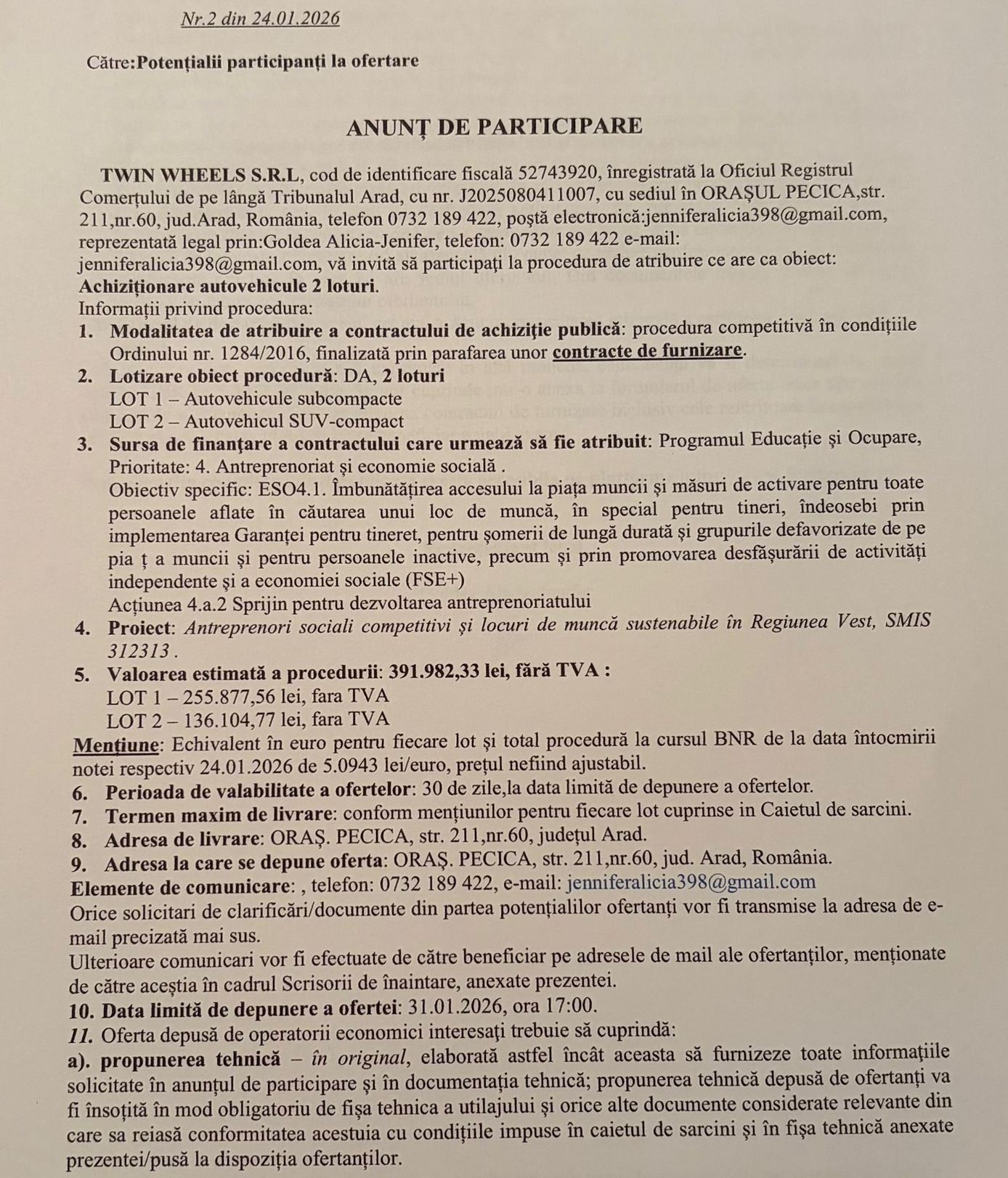 ANUNȚ DE PARTICIPARE Distribuie: 0Diverse Postat de NewsAr.ro 24 ianuarie, 2026 A+ A- Email Print Distribuie: Lasă un comentariu Cancel ReplyYour email address will not be published.ComentariuNume Email Site Salvează-mi numele, emailul și site-ul web în acest navigator pentru data viitoare când o să comentez. Δ Articole mai noiAdrian Mihalcea despre UTA – Rapid: „Suntem pregătiți să câștigăm” (VIDEO) Articole mai vechiBărbat reținut după ce a accidentat mortal o colegă