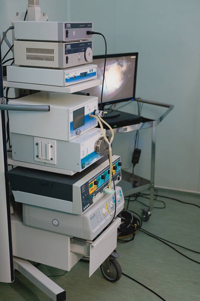 Pentru dotarea celor două săli de operație s-au cumpărat: o masă de operație hidroelectrică, lampă scialitică smart – singura din regiunea noastră, aspirator de fum chirurgical, turn de laparoscopie, harmonic scalpel (cu ajutorul căruia se poate secționa un țesut fără să fie ars sau lezat ceea ce duce la reducerea riscurilor intra și post-operatorii precum și la minimalizarea suferinței pacientului), electrocauter, încălzitor sânge și plasmă dar și diferite fluide medicale, lampă UVB care asigură decontaminarea și mediul aseptic. Pentru fiecare sală de operație s-a achiziționat mobilier medical din inox: patru mese mayo, patru scaune chirurg, patru mese de transfer și suport aparatură, două mese de servire instrumentar medical.