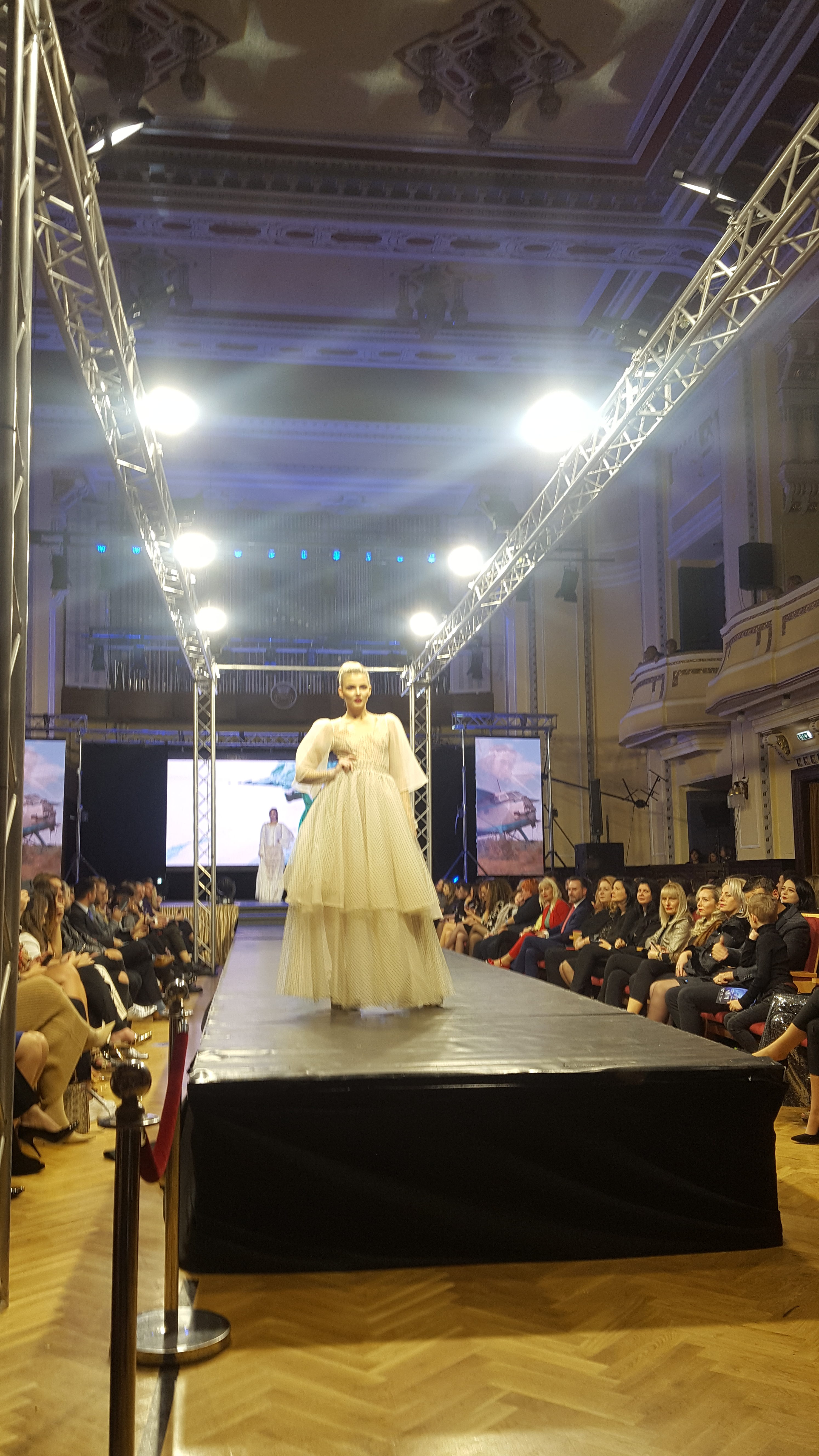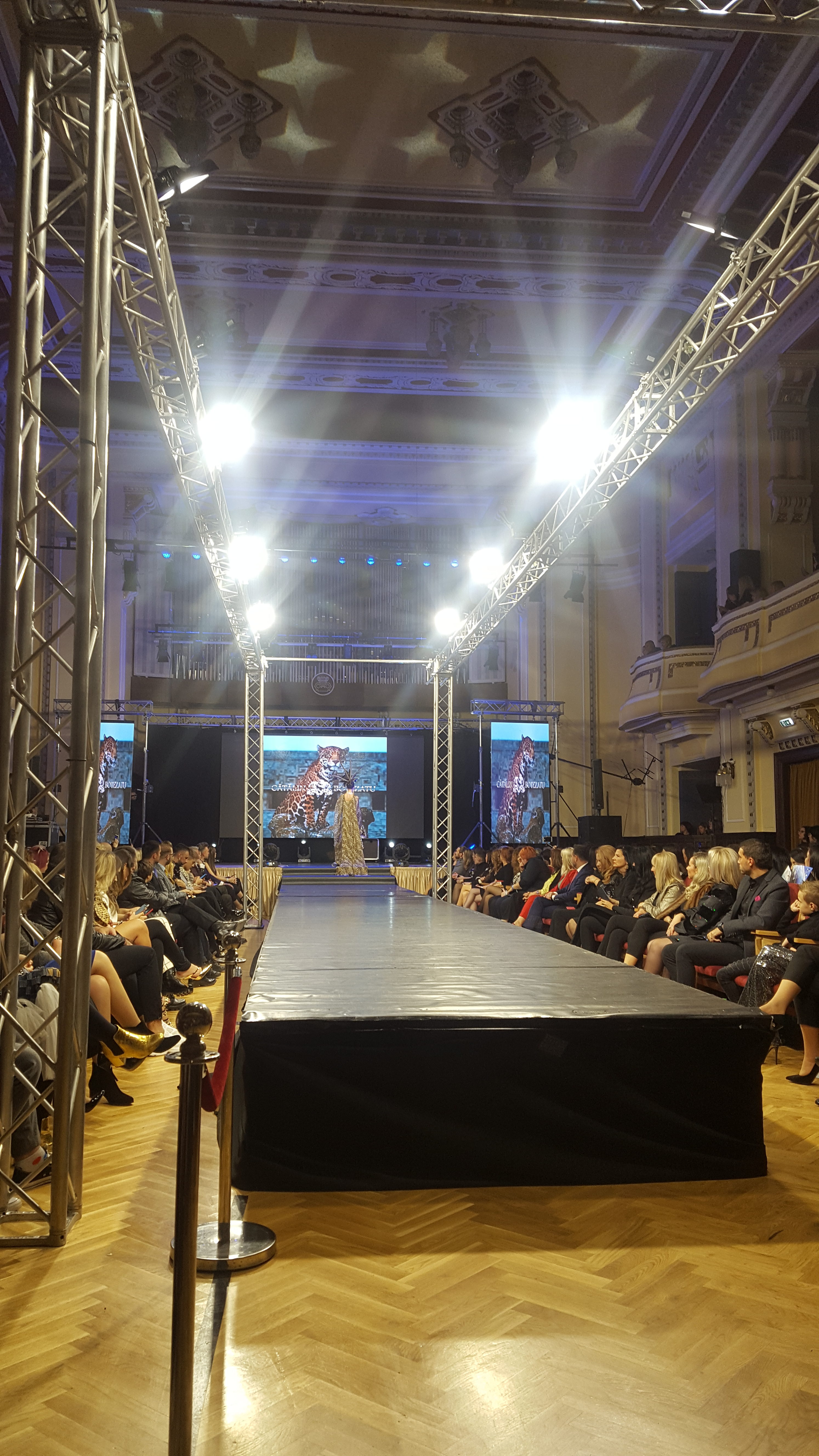 Eleganta sală de spectacole a Filarmonicii a fost arhiplină, cei prezenți așteptând cu nerăbdare să vadă creațiile unor designeri celebri precum Cătălin Botezatu, care a și deschis evenimentul, Romanița Iovan, dar și a talentaților designeri locali care s-au depășit pe ei înșiși cu colecțiile prezentate, precum Paul Sergiu Micșa și Vali Cioban.