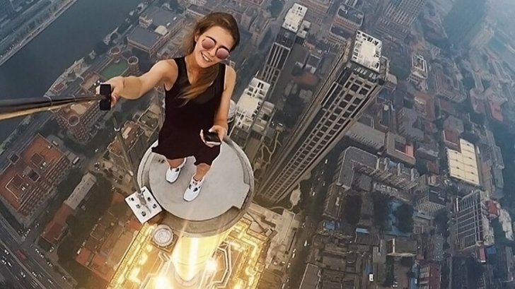 Pentru a le obține, tânăra se caţără pe cele mai greu accesibile clădiri şi alege punctul cel mai periculos.