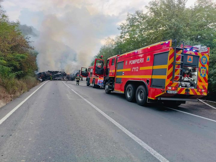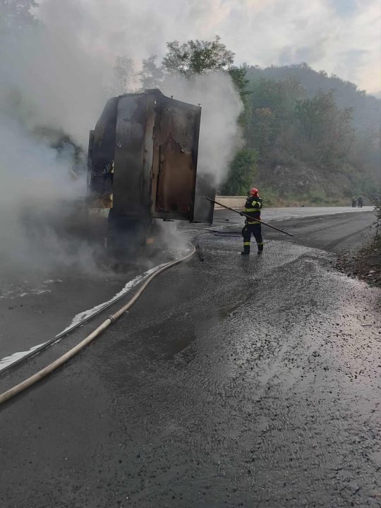 Un autotren a luat foc, marți dimineața, pe DN 7, între localitățile Vărădia de Mureș și Săvârșin.