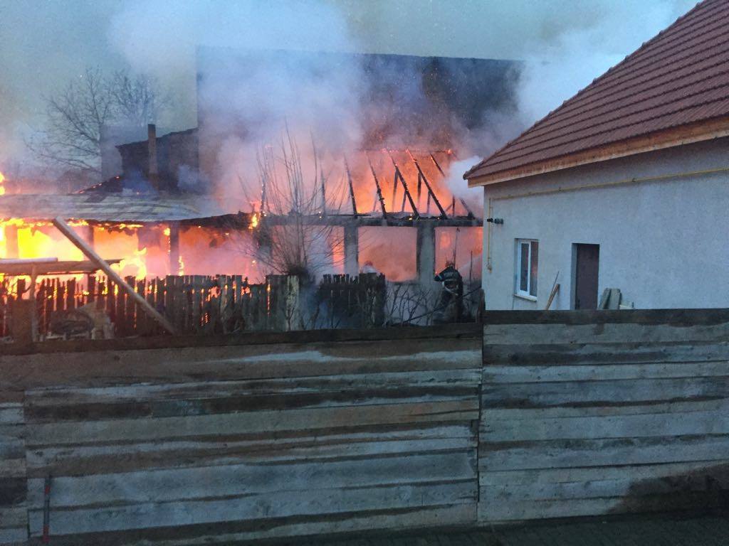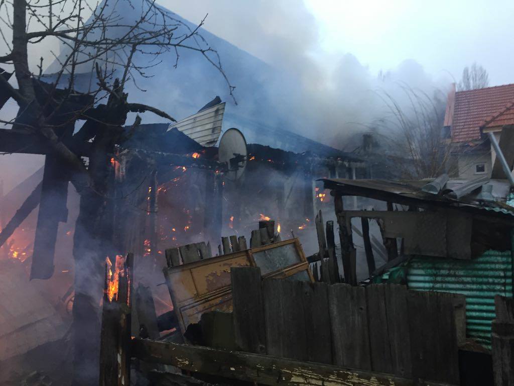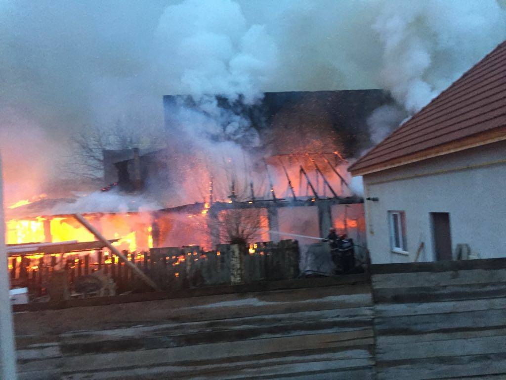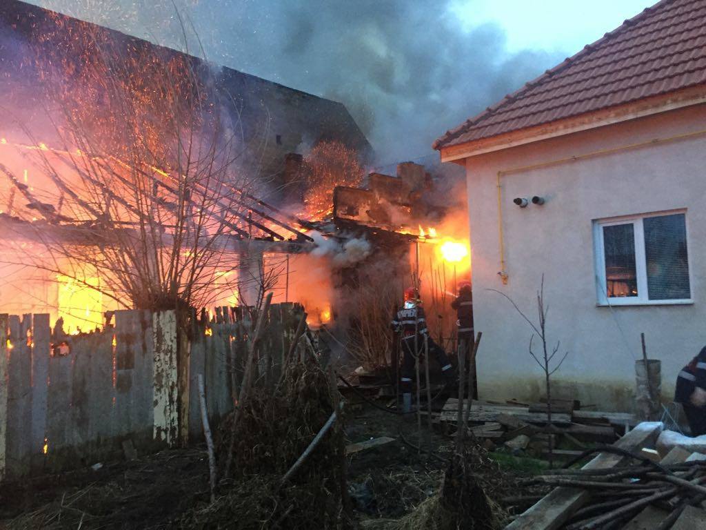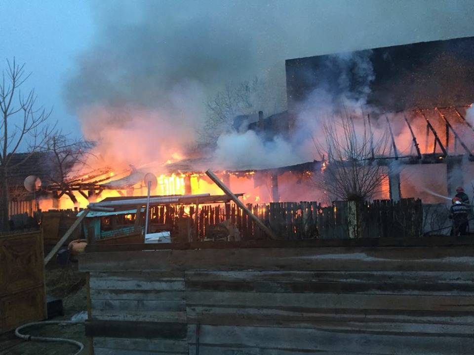 În momentul intervenţiei pompierilor focul se manifesta violent, flăcările ridicându-se la câţiva metri deasupra acoperişului.