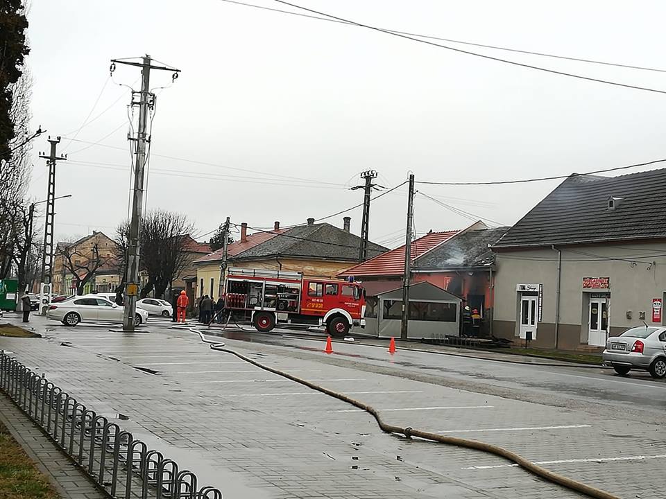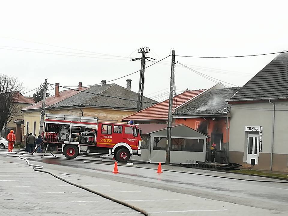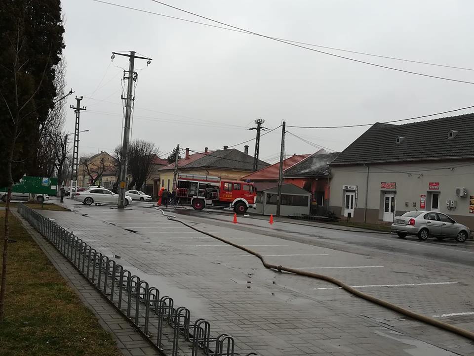 „În aceasta dimineața în jurul orei 07.30 Detașamentul de Pompieri Arad s-a deplasat în localitatea Pecica pentru a interveni la un incendiu ce se manifesta la o clădire cu funcțiuni mixte, casa de locuit și BAR. În sprijin a fost solicitat și SVSU Pecica. La sosirea echipajelor de intervenție incendiul se manifesta violent și generalizat în interiorul bar-ului propagat la acoperiș, la co structurile anexe din curte și la o anexa a unui vecin. Intervenția foarte dificila datorita prezentei mai multor butelii în interiorul construcției și a modului de amplasare a acestora ( construcțiile fiind foarte apropiate fără spatii între ele). Forțele de intervenție au fost suplimentate cu încă o autospeciala a Detașamentului Arad și una de la SVSU Pecica. În total se intervine cu 4 autospeciale, 8 Subofiteri și 10 voluntari. S-a reușit limitarea incendiului pentru a nu se mai extinde la alte construcții. În acest moment incendiul este localizat, limitat și nu mai exista pericol de propagare. Se acționează în continuare pentru lichidarea ultimelor focare”, a declarat George Pleşca, purtător de cuvânt al ISU Arad. (O.T.)