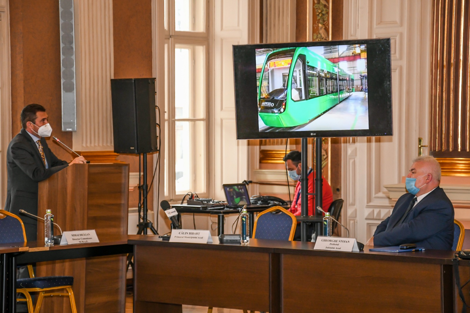 „Administrația arădeană are în derulare peste 36 proiecte de infrastructură verde. Ca inovare avem în desfăşurare crearea a 22 de stații de închiriere pentru cele 330 biciclete, care vor putea fi închiriate de către arădeni. Primăria achiziționează 10 autobuze electrice şi 8 tramvaie noi. De asemenea modernizăm 20 de tramvaie şi creăm 2 stații de încărcare electrică pentru autobuze. Pentru facilitarea accesului la noile mijloace de transport în comun achiziționăm un sistem de taxare (e-ticketing). Lucrăm la realizarea unor puncte fixe în zonele verzi din municipiul Arad care vor fi dotate cu aparate de fitness în aer liber, care generează electricitate pentru încărcarea telefoanelor. Ne dorim un Arad curat, sănătos şi verde, iar pentru îndeplinirea acestui obiectiv ne dorim dezvoltarea malului Mureşului şi crearea de noi parcuri pe raza municipiului”, a declarat Călin Bibarț, primarul municipiului Arad.