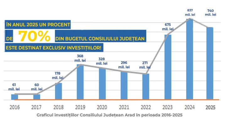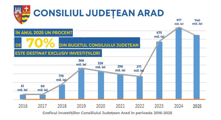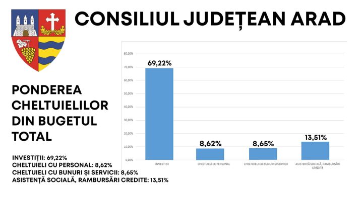 Este al doilea an consecutiv când Consiliul Județean Arad alocă 70% din buget spre investiții.