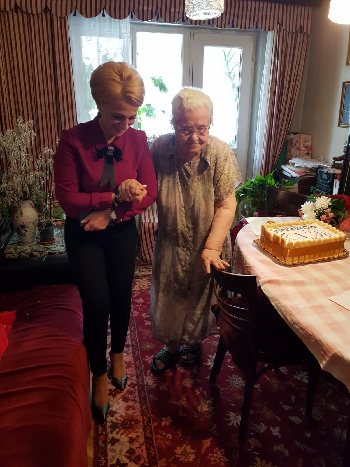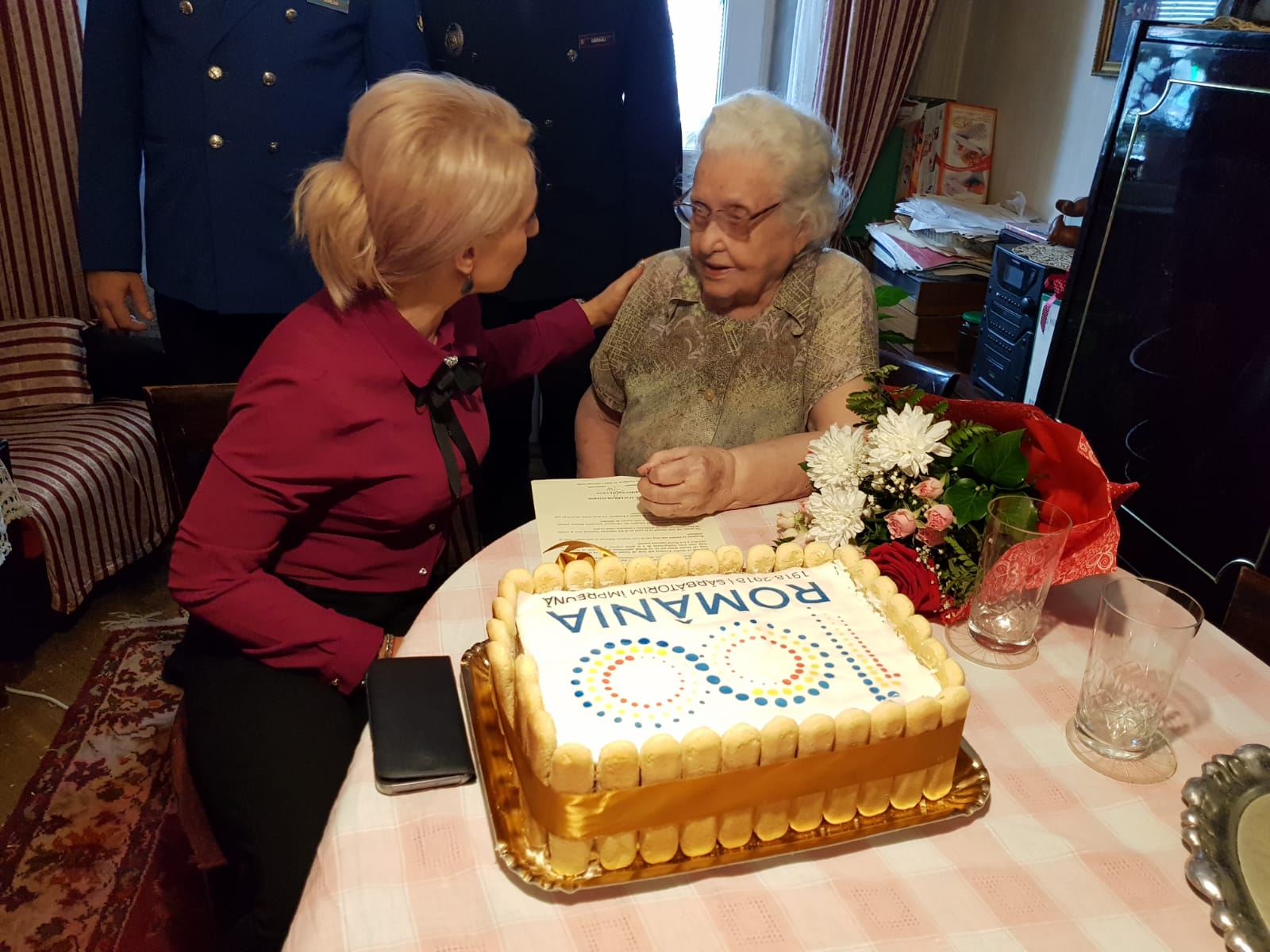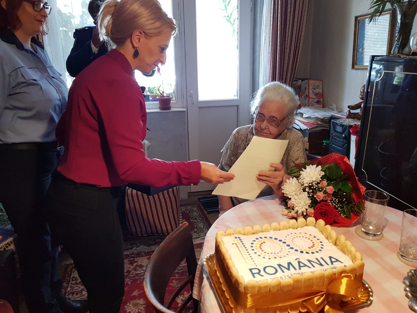 Prefectul i-a adresat Anei Ianchici un mesaj de felicitare din partea Ministrului Afacerilor Interne, Carmen Dan, însoțit de un tricolor și o insignă cu inscripția „România 100”. De asemenea, Florentina Horgea i-a dăruit sărbătoritei un tort aniversar, inscripționat cu sigla Anului Centenar. Pe tot parcursul vizitei, venerabilei doamne i-a stat alături fiica acesteia, Minerva Ianchici, în vârstă de 76 de ani, profesoară pensionară de limbile engleză și franceză: „Ne bucurăm ori de câte ori ne vizitează cineva, a spus Ana Ianchici. Cea mai mare durere a noastră este că nu mai avem pe nimeni. De aceea, tare ne bucurăm că ne-ați deschis astăzi ușa”.
