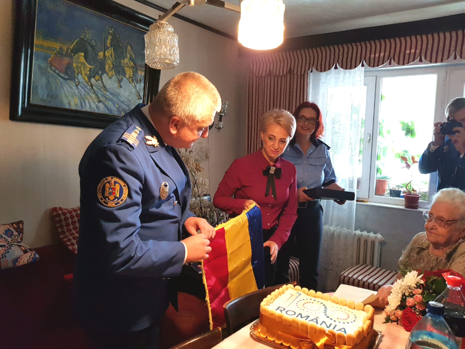Campania inițiată de Ministerul Afacerilor Interne „O viață cât un centenar” continuă la Arad. De data aceasta, sărbătorită a fost Ana Ianchici refugiată la Arad din Basarabia, în ’44, cu doi copii mici.