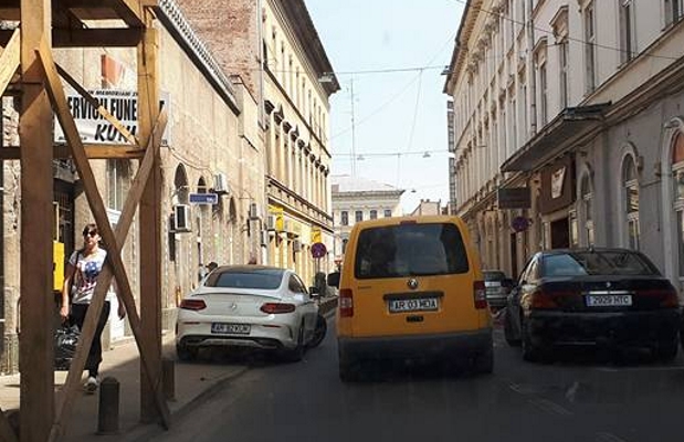 Aşa cum se poate vedea, maşina cu numărul de înmatriculare AR 92 KUK este parcată pe partea stângă a drumului, pe trotuar, afectând circulaţia pietonilor. Maşinile mai mari, de asemenea, se strecoară cu greu printre Mercedesul alb şi celelalte autovehicule parcate regulamentar pe partea dreaptă a drumului.