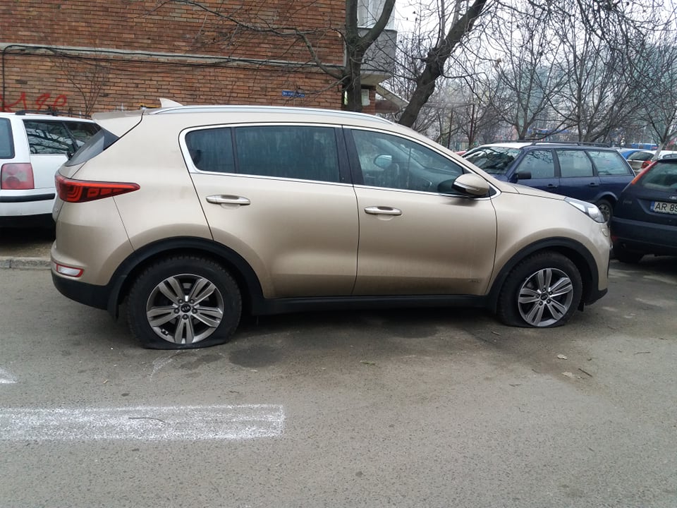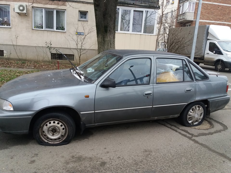 Potrivit martorilor, niște „binevoitori” au tăiat în cursul nopții trecute cauciucurile de la aproximativ 9 autoturisme, inclusiv de la un microbuz, parcate pe strada respectivă. La fiecare au fost tăiate câte două cauciucuri, din față și din spate.