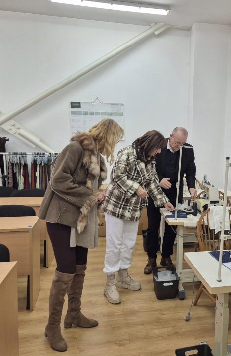 Prezentă la întâlnirea cu reprezentanții celor două facultăți, renumitul creator arădean, Elis Lăslean a apreciat laboratoarele Facultății de Inginerie pentru diversitatea echipamentelor de producție și a aparatelor pentru analiza fizico-mecanică și de confort a materialelor textile, softurile utilizate pentru proiectarea țesăturilor, Arahne, a tricoturilor, Steiger, a broderiilor, Brother, precum și cel pentru confecții, Gemini.