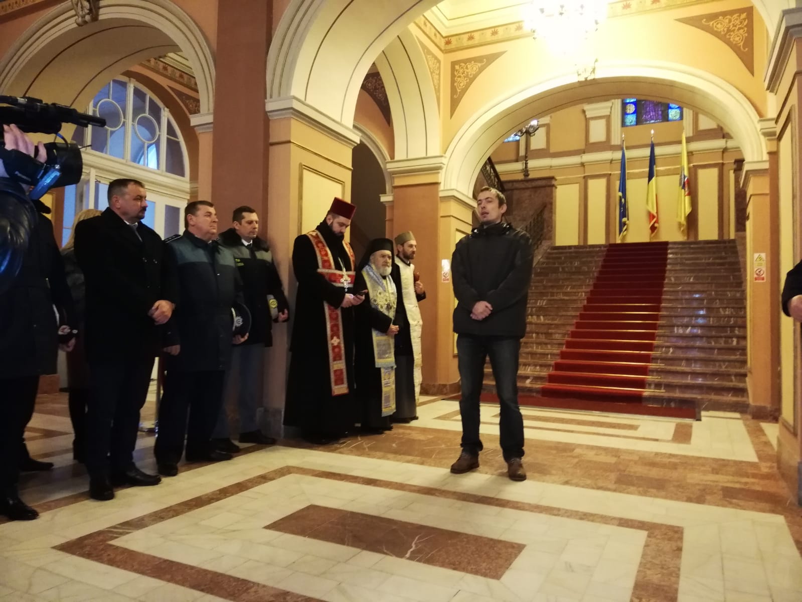 Ceremonia dedicată Unirii Principatelor Române s-a desfășurat în interiorul Palatului Administrativ, din cauza vremii nefavorabile, Municipiul Arad și o parte însemnată din județ aflându-se ieri sub incidența unui cod galben de ploi însemnate și polei, fenomene ce s-au manifestat puternic la ora începerii evenimentului.