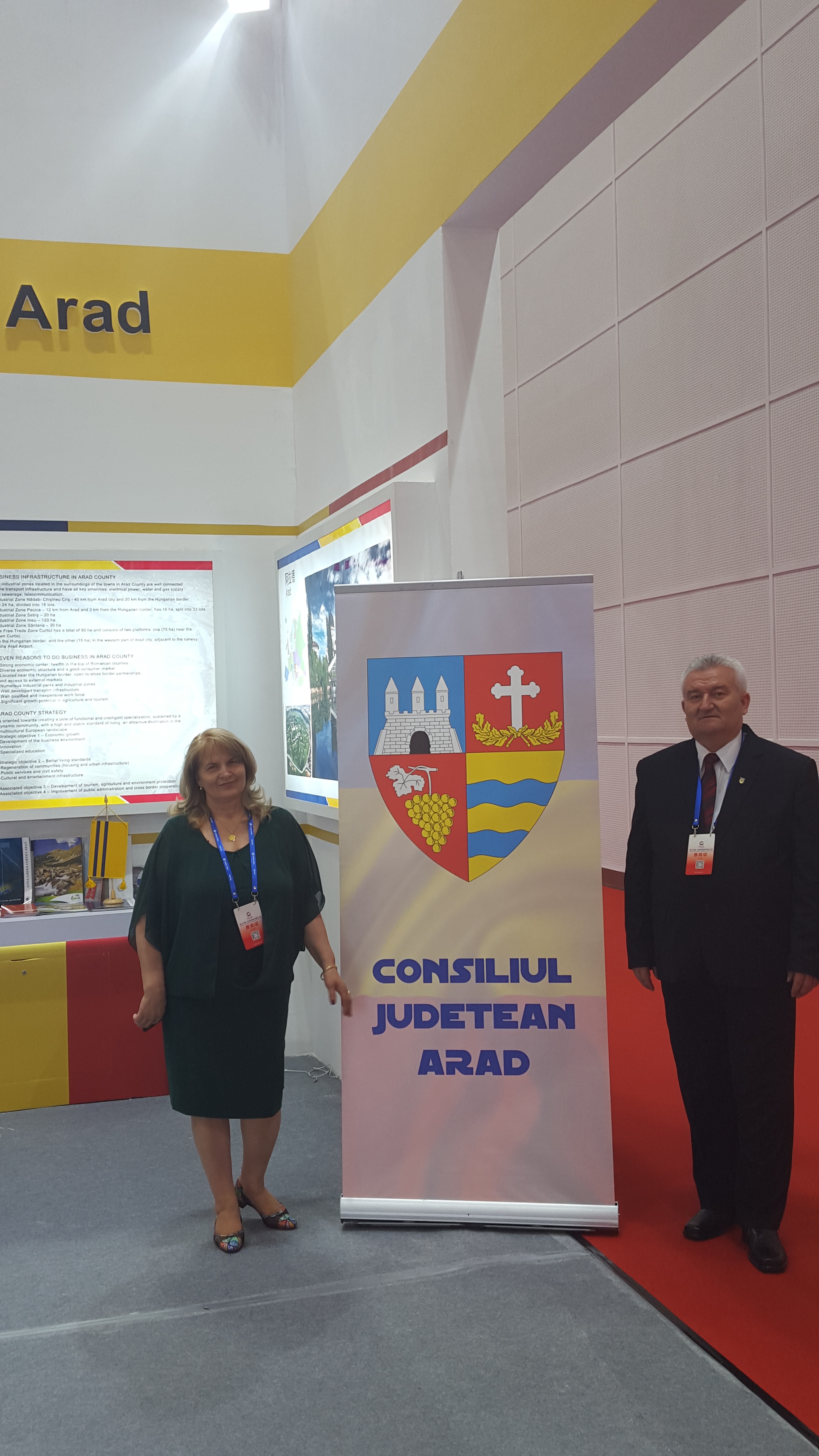Prezenţa judeţului Arad în China s-a materializat prin organizarea unui stand expoziţional în cadrul Pavilionului României, unde s-au stabilit contacte deosebit de importante cu reprezentaţi ai provinciilor chineze, precum şi cu ceilalţi participanţi. Totodată, au fost prezentate oportunități de afaceri pe care le oferă județul Arad şi s-a manifestat deschiderea orașului către o colaborare consistentă cu partenerii chinezi.