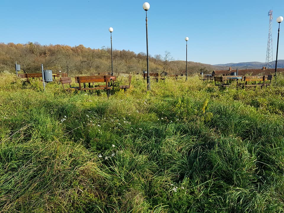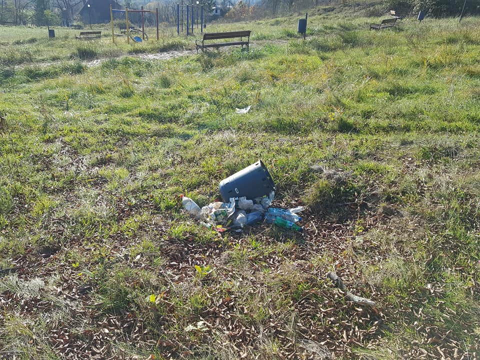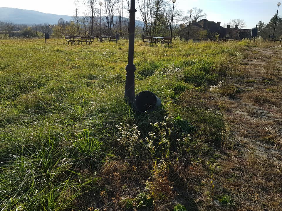 Din fotografiile postate pe Facebook se poate vedea starea deplorabilă în care se află parcul din localitate, năpădit de bălării şi cu coşurile de gunoi distruse, căzute la pământ.