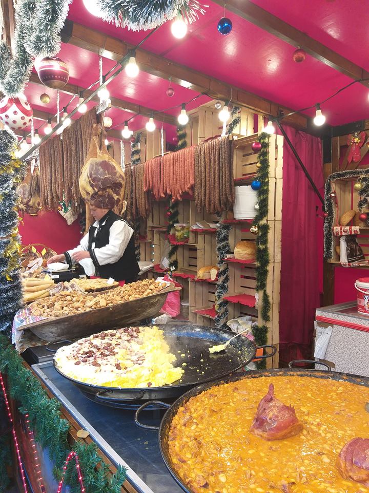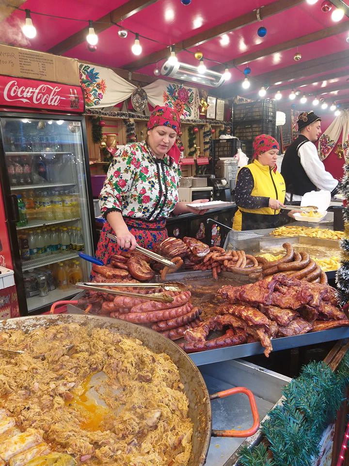 Târgul de Crăciun din Timișoara este împărțit pe două zone, una fiind destinată mâncărurilor. Aici, gurmanzii se pot delecta cu numeroase preparate tradiționale, pe lângă celebrele minuturi la grătar. Sarmale, salata de boeuf, cartofi făcuți în mai multe feluri, bulz, produse din carne de mangaliță (jumeri, șuncă, slănină), plăcinte și nu numai, le vor ține de foame celor care vizitează târgul.