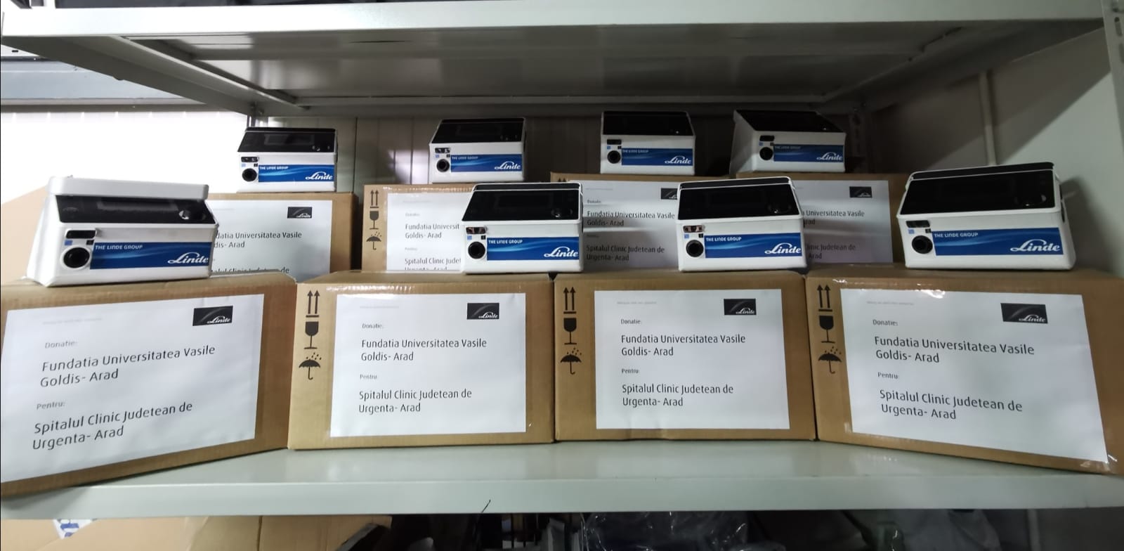 Fundația Universitară „Vasile Goldiș” din Arad şi Arhiepiscopia Aradului, alături de parteneri antreprenoriali, firme reprezentative din municipiul și județul Arad, au livrat conducerii Spitalului Clinic Județean de Urgență din Arad opt sisteme de ventilaţie și monitorizare respiratorie pentru secțiile medicale și ATI.