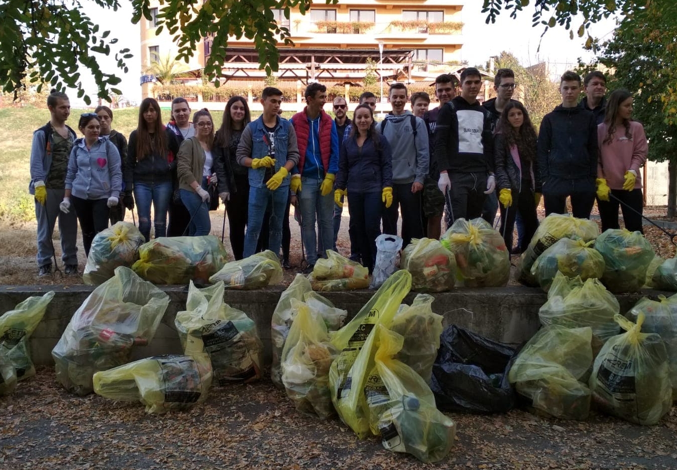 Astfel, voluntarii au colectat în total 60 de saci galbeni de deșeuri reciclabile, doi saci de deșeuri amestecate și un sac de 240 l de deșeuri din sticlă.