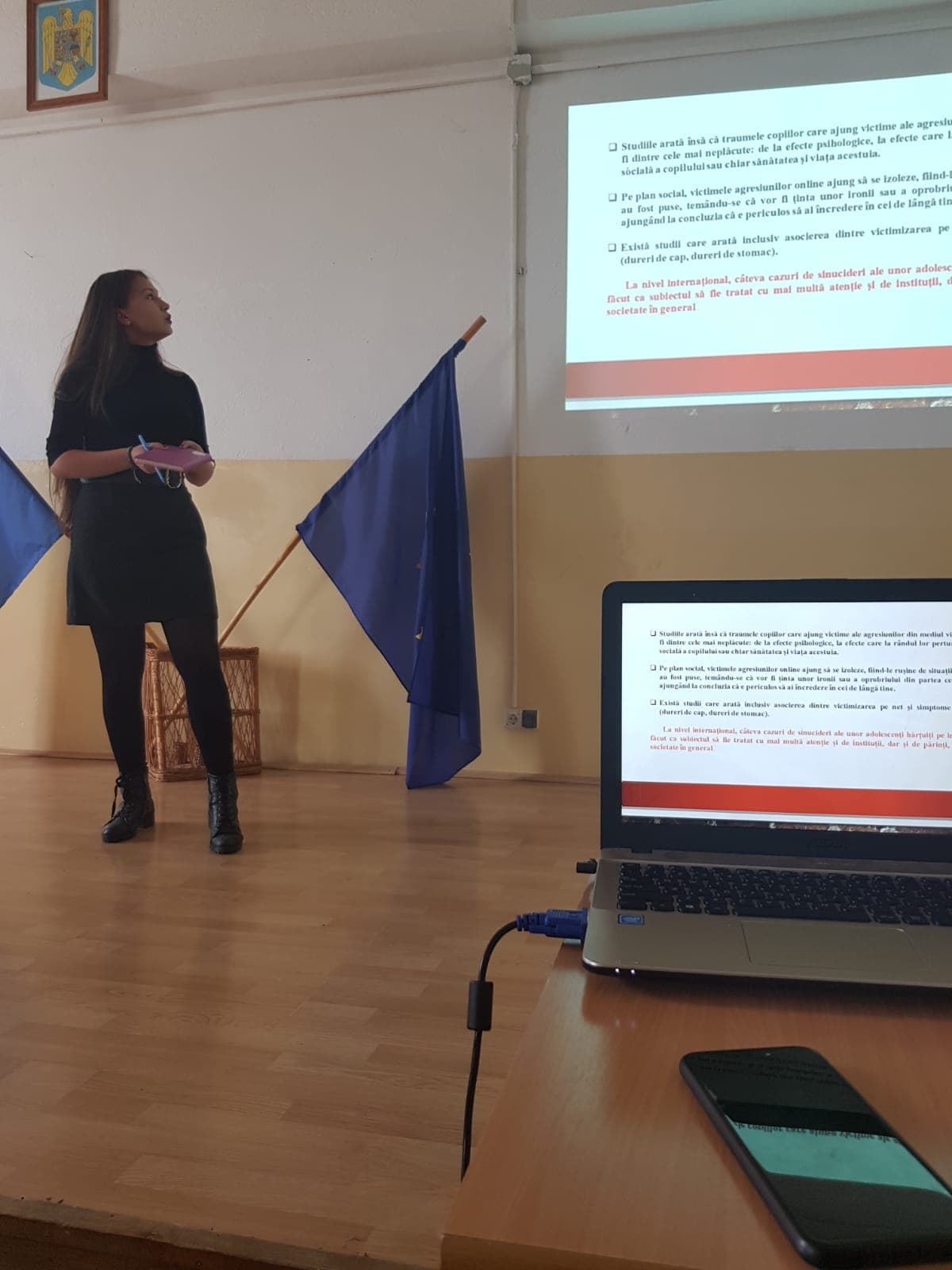 „Ne-au fost alături și reprezentanți ai I.P.J. ARAD, I.J.J. ARAD, D.G.A.S.P.C., C.J.R.A.E., care au luat, de asemenea, cuvântul și le-au explicat elevilor de gimnaziu prezenți diferite aspecte legate de cyberbullying și diferite cazuri cu care s-au confruntat, astfel oferindu-le o viziune cât mai reală asupra lucrurilor”, spun reprezentanții CJE Arad.