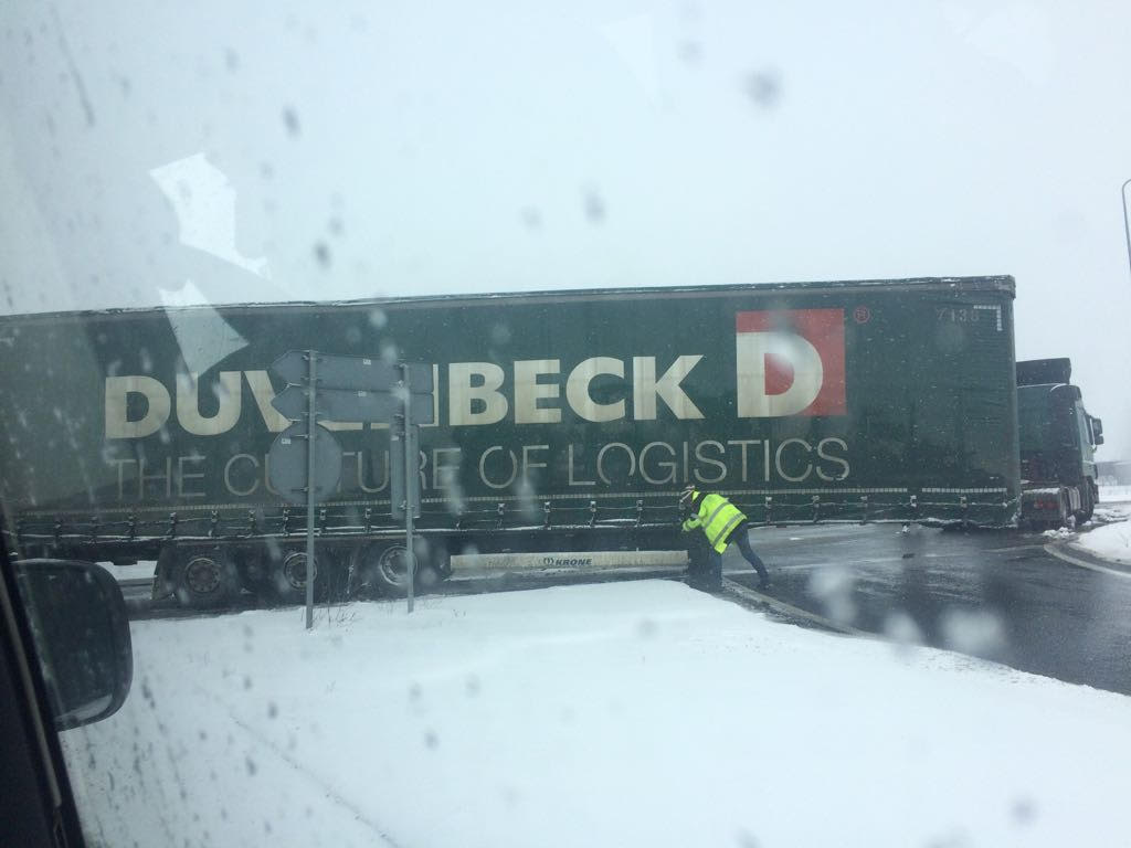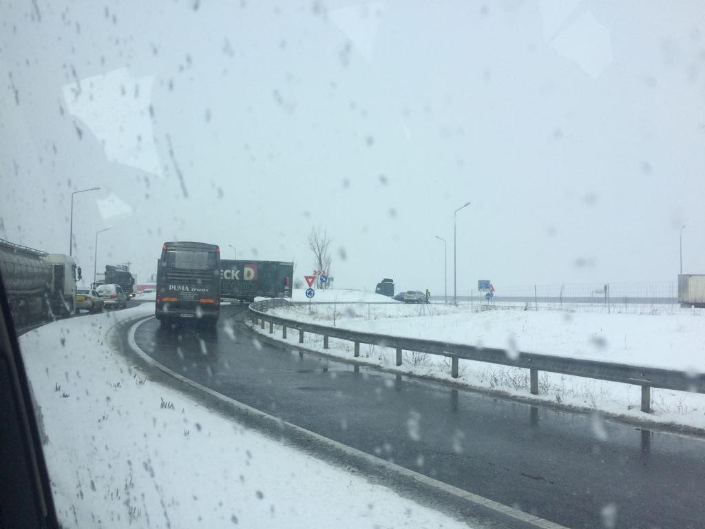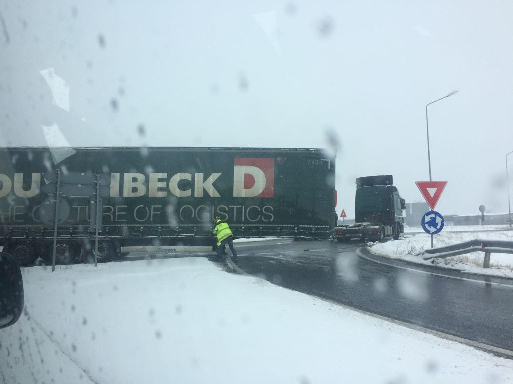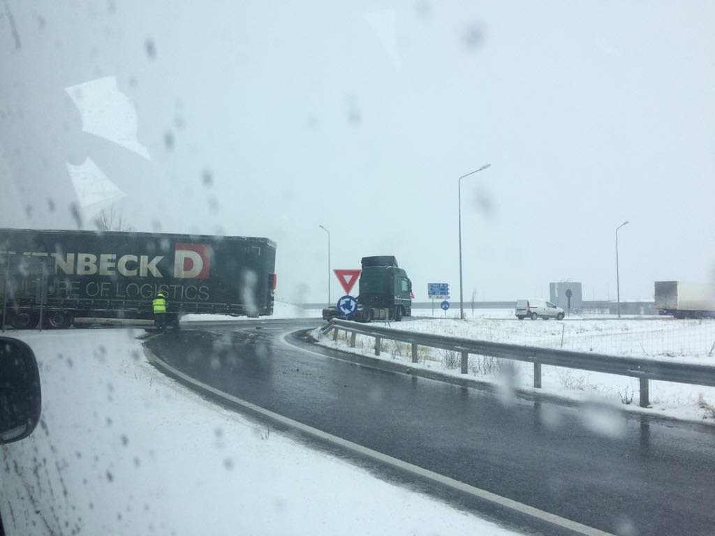 Fază de cascadorii râsului, dar pe atât de periculoasă, în apropiere de Arad, unde remorca unui TIR s-a desprins de capul tractor.