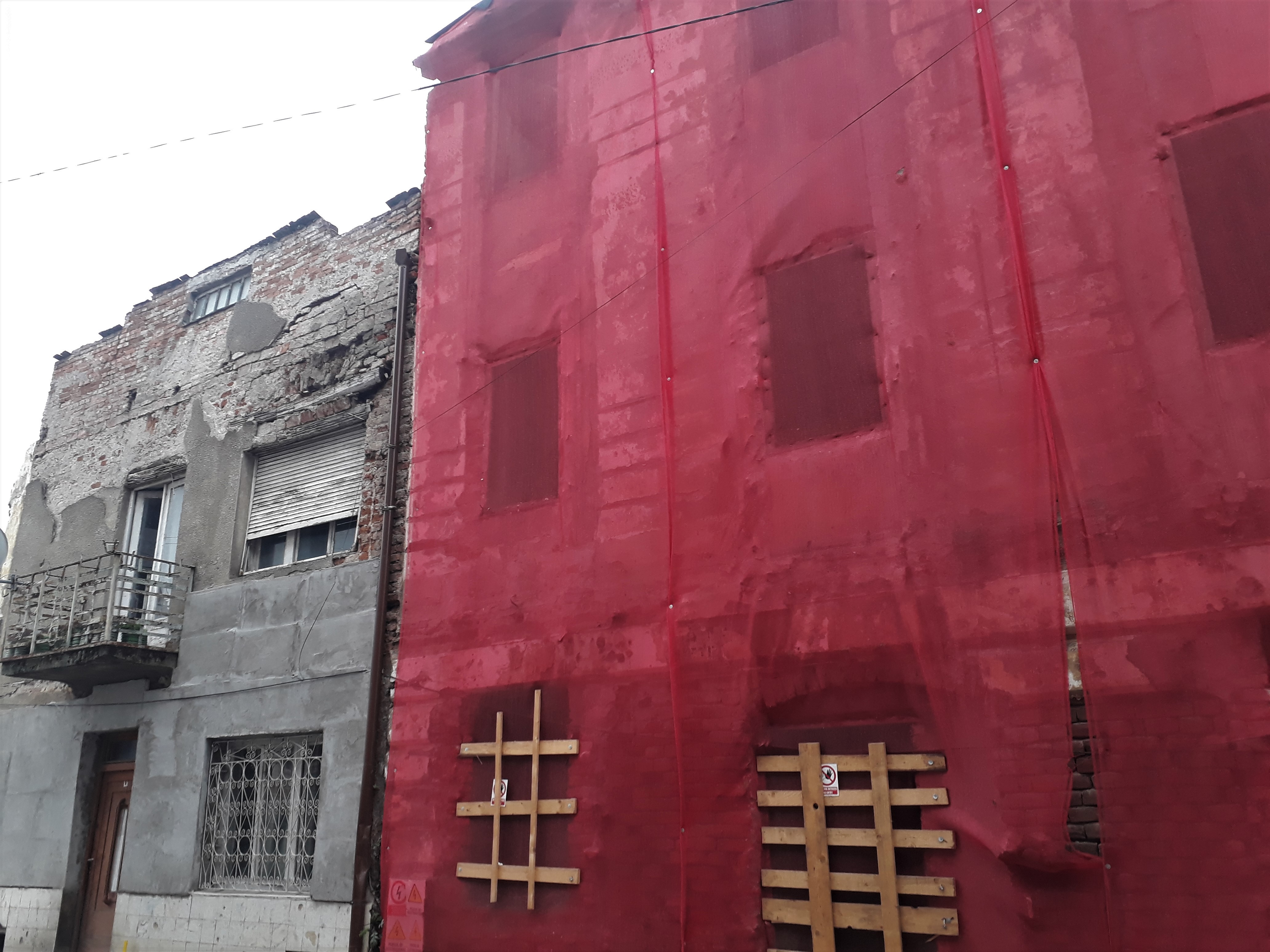 La începutul lunii septembrie a anului trecut ni se comunica faptul că plasa „va proteja zona de praful rezultat în urma lucrărilor de reabilitare ce vor fi demarate în viitorul apropiat, precum și limitarea accesului în clădire a persoanelor neautorizate”.