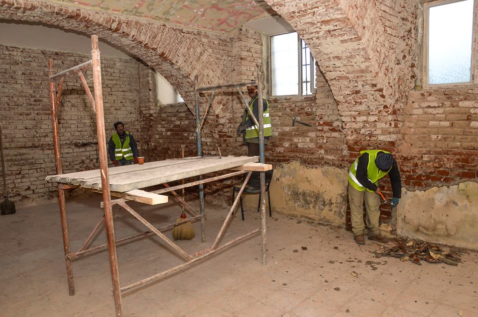 Până acum s-au executat demolări, consolidări, s-a îndepărtat parte din tencuiala de pe pereţi, iar în prezent se intervine şi la nivelul acoperişului unde se realizeză lucrări de reparaţii.