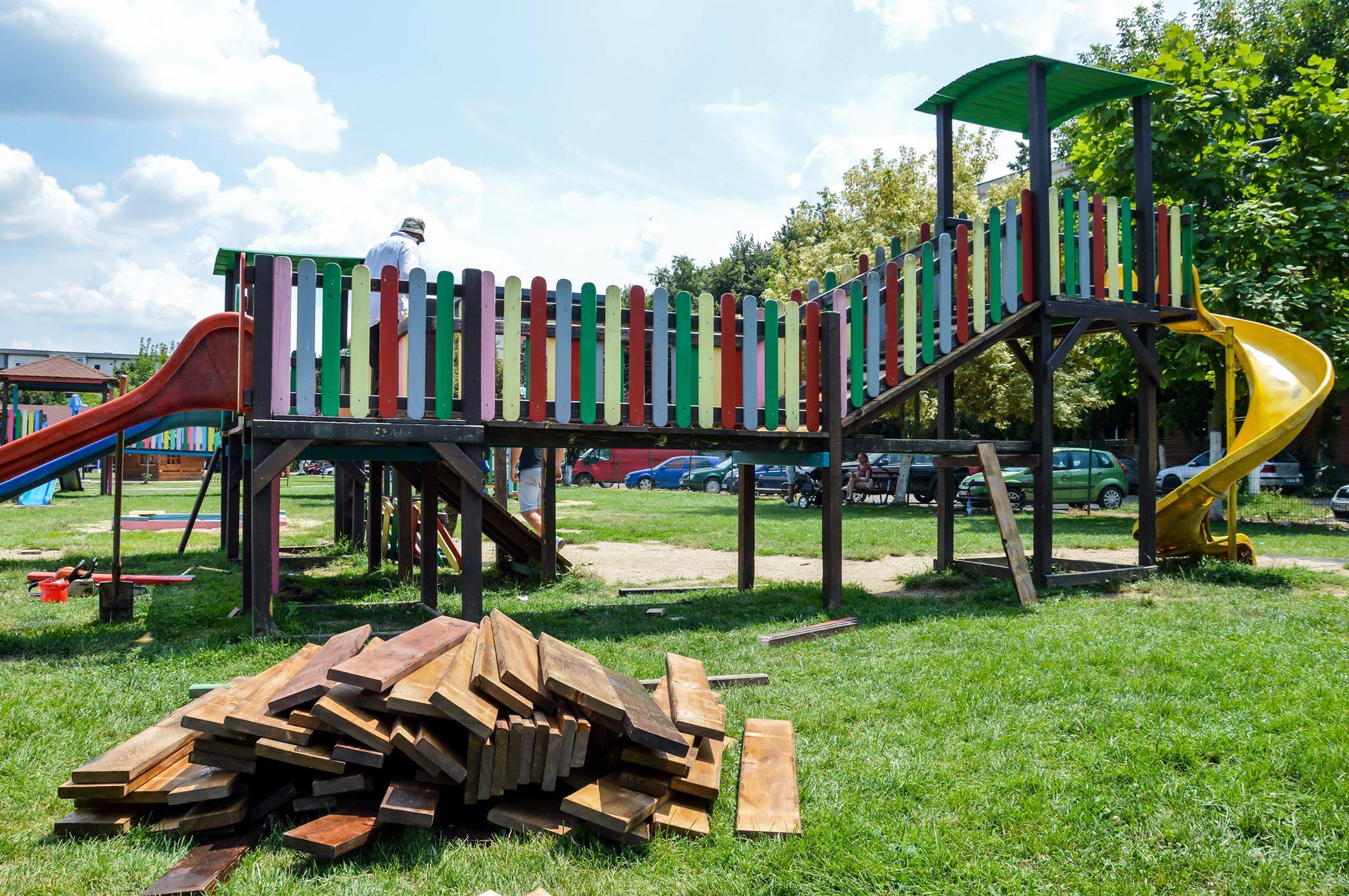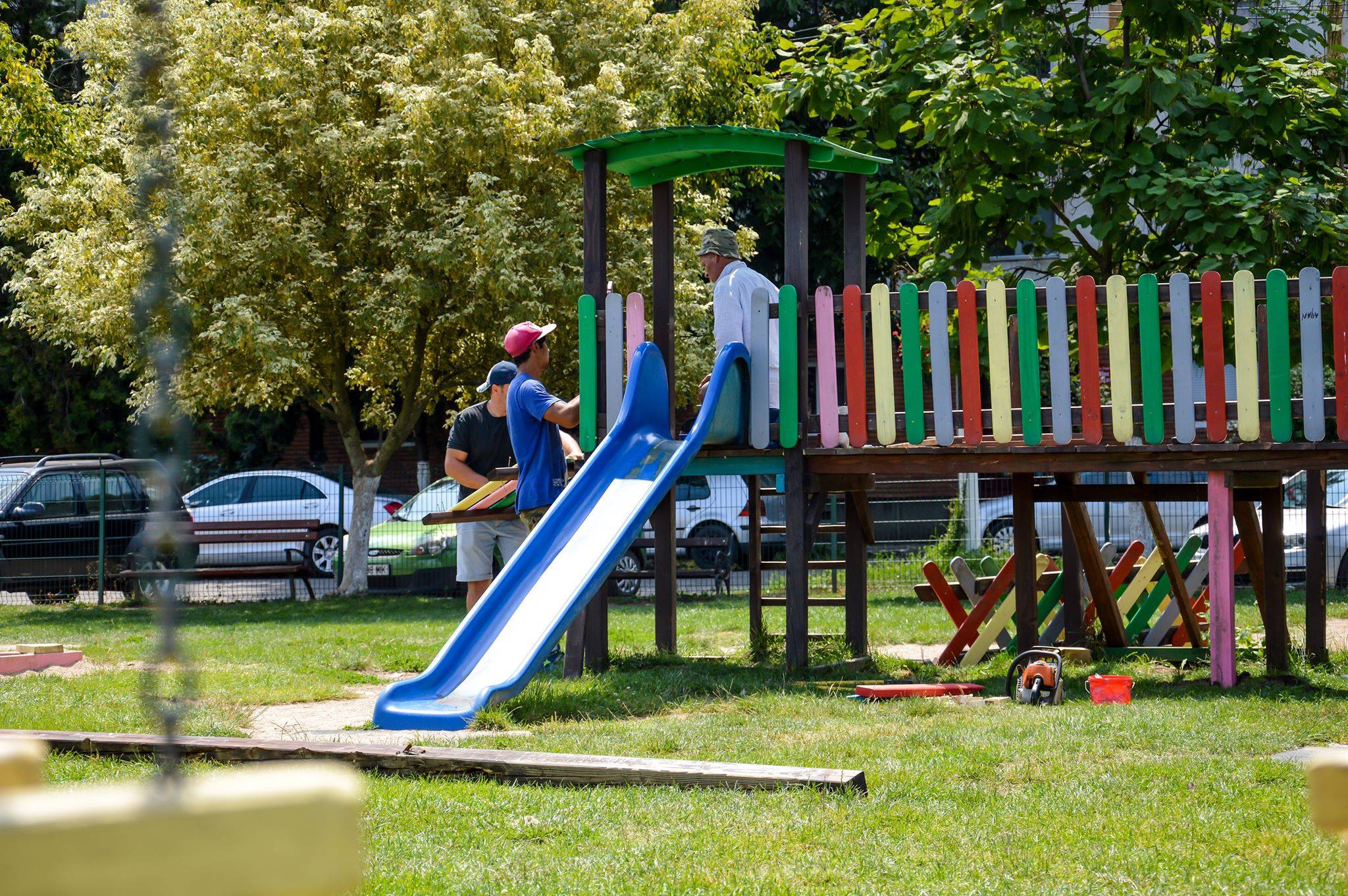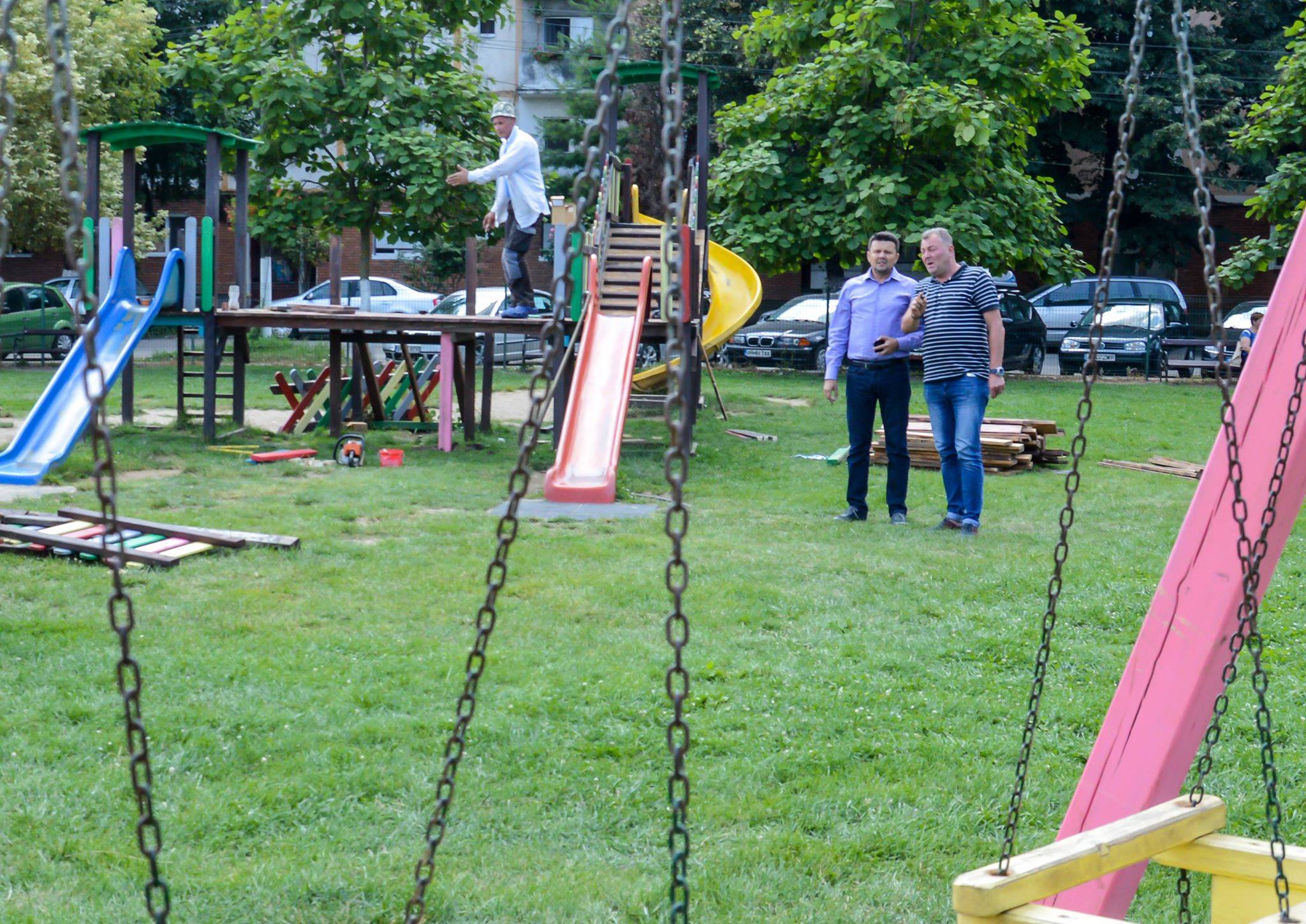 Unul dintre primele spaţii de joacă care a intrat în reparaţii este cel din Parcul „Regina Maria”. Aici se vor repara podeţele fixe şi mobile ale modulelor de lemn, acoperişul de la module şi tobogane, va fi transportat şi aşternut nisip şi nu în ultimul rând vor fi cosite săptămânal suprafeţele înierbate. Preocupat de starea locurilor de joacă din municipiu, viceprimarul IonelBulbuc s-a deplasat în teren pentru a cunoaşte îndeaproape situaţia şi pentru a se asigura că lucrările vor fi de calitate.