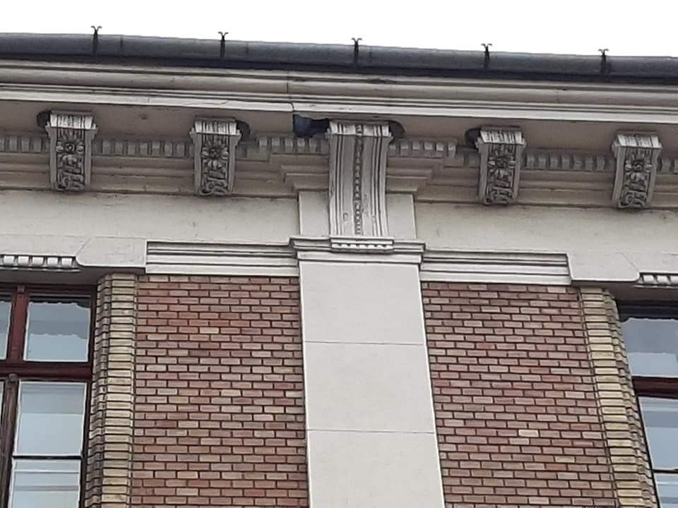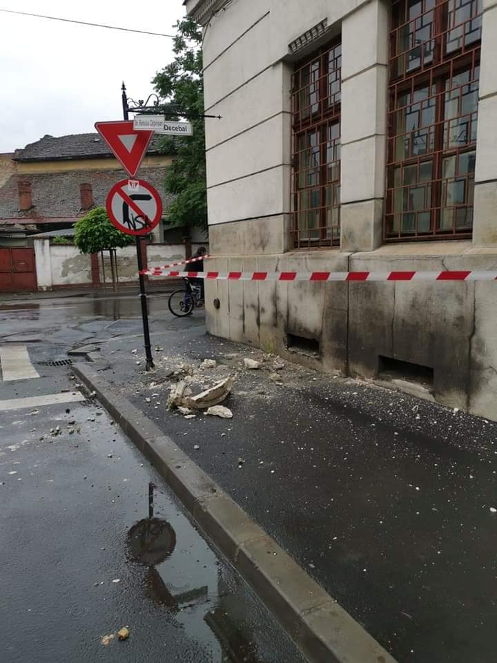 Situația este gravă, o bucată mare de tencuială s-a desprins și a căzut pe trotuar, dacă ar fi lovit un trecător s-ar fi putut ajunge la o adevărată tragedie. Incidentul a fost semnalat de un cetățean pe un grup de facebook din Arad.