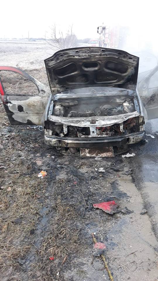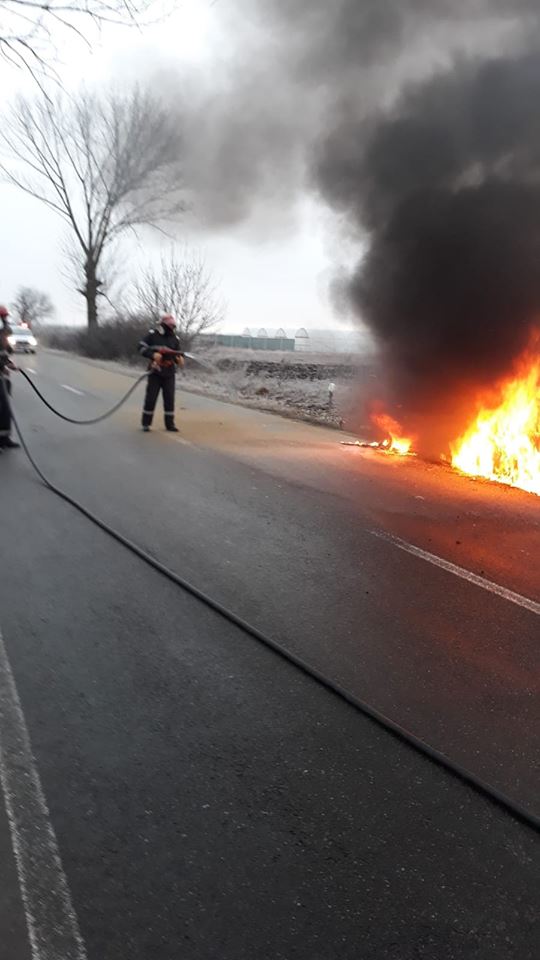 „Șoferul a reușit să iasă din mașina. Din păcate la sosirea echipajului de intervenție de la Detașamentul Ineu, mașina ardea generalizat”, precizează reprezentanții ISU Arad.