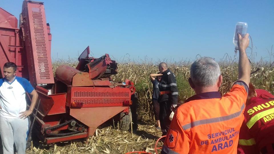 Potrivit ISU Arad, o persoană și-a prins mâna stângă într-un utilaj agricol în timp ce era la muncă.