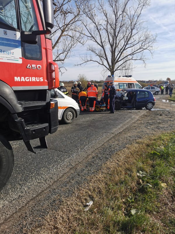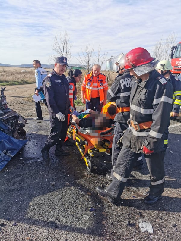 Două persoane au rămas prinse între fiarele contorsionate ale mașinilor, în urma unui accident petrecut pe DN 79 A.