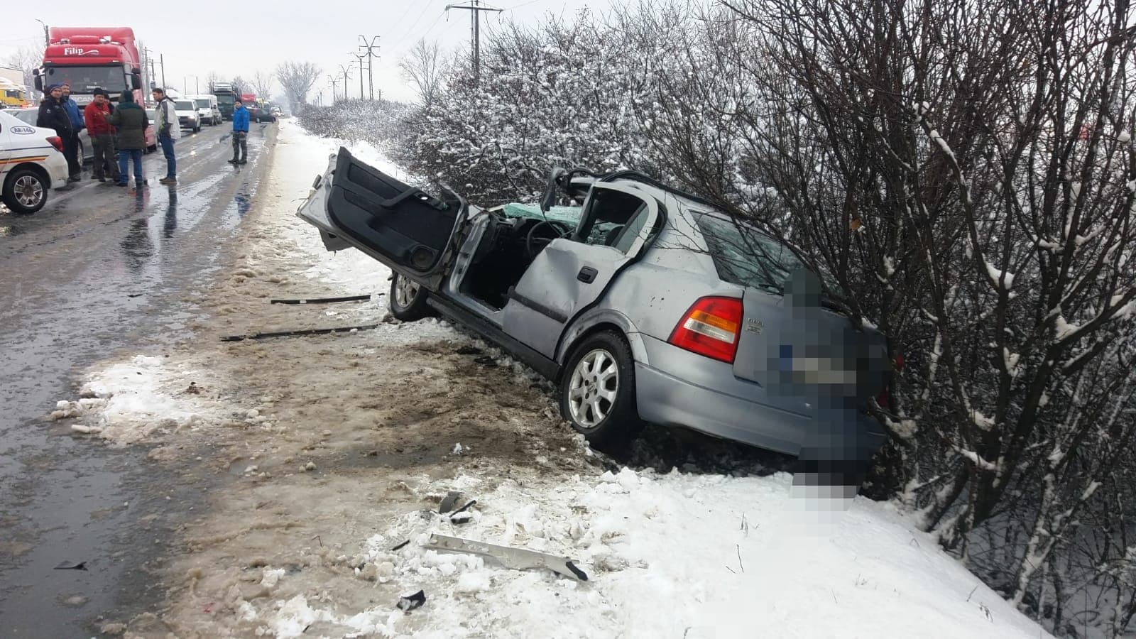 Potrivit primelor informaţii, în evenimentul rutier au fost implicate un TIR şi un autoturism.