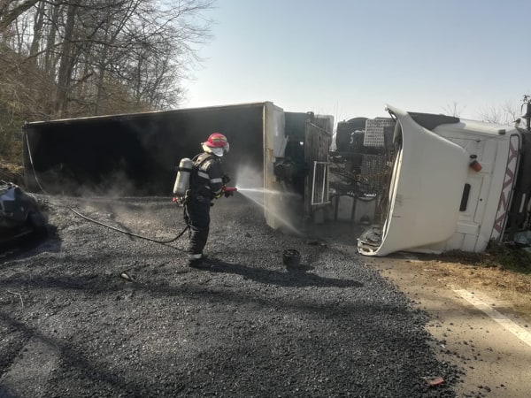 Camionul s-a răsturnat și s-a scurs bitum pe șosea. În celălalt autoturism implicat, o persoană a rămas încarcerată între fiarele contorsionate. Pompierii au acționat pentru extragerea acesteia din mașină și pentru răcirea bitumului din cisternă.