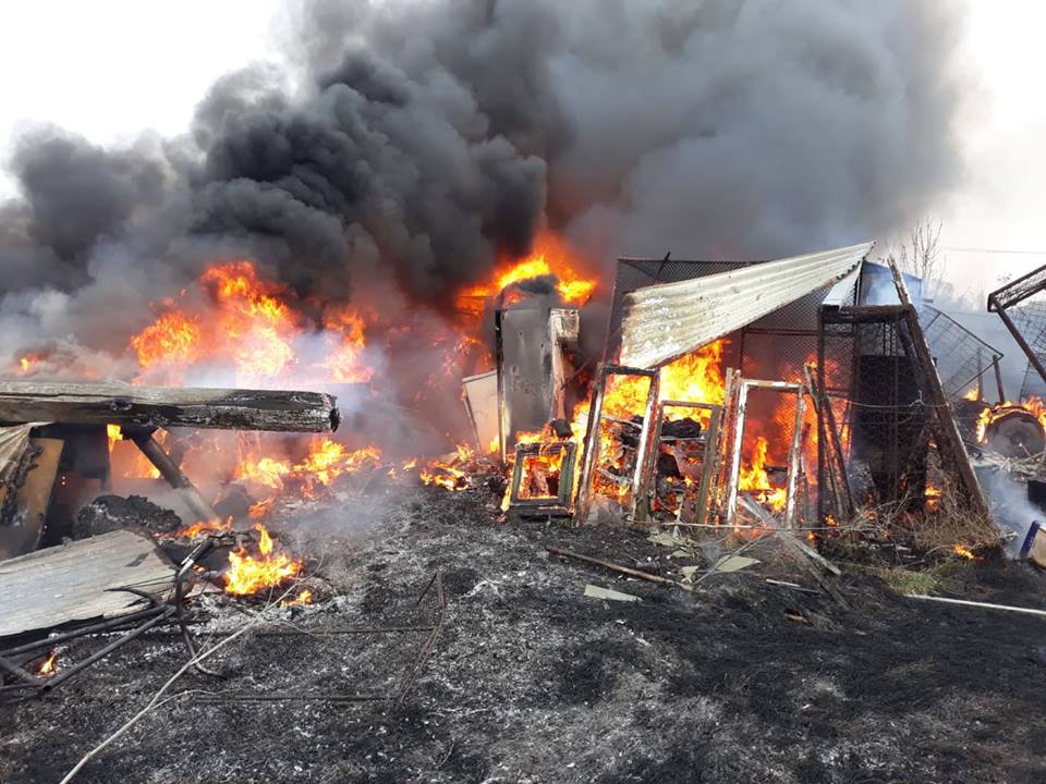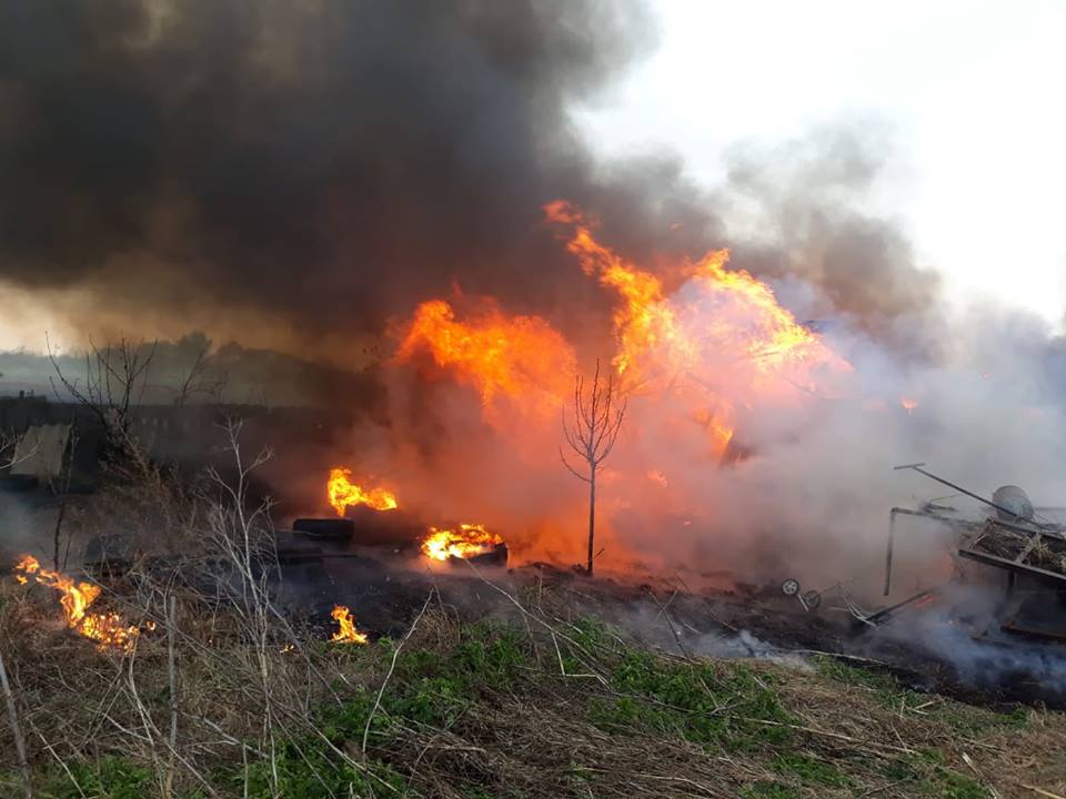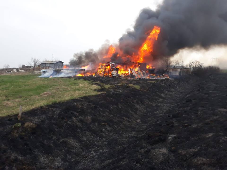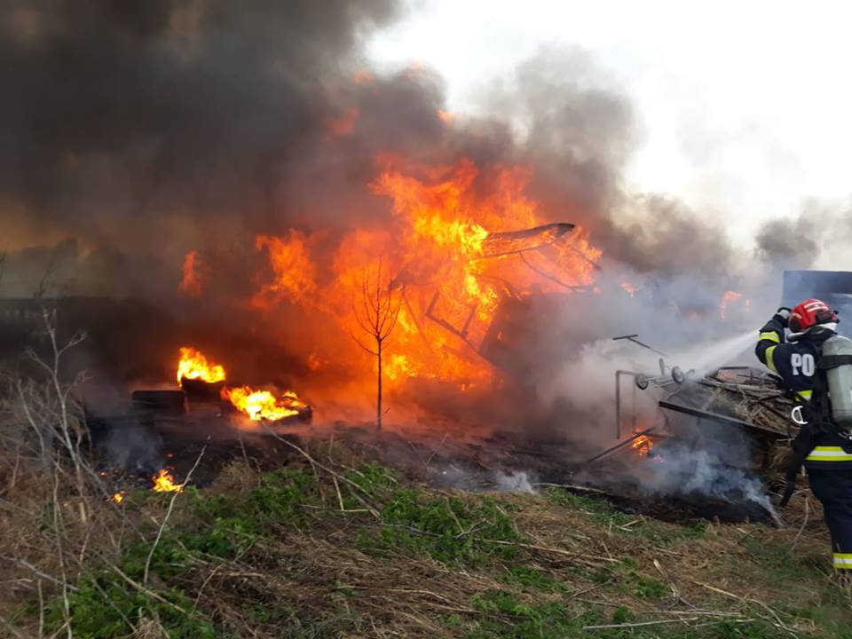 O fermă situată la ieșirea din Arad a luat foc după ce flăcările de la un incendiu de vegetație uscată s-au propagat la anexele acesteia.
