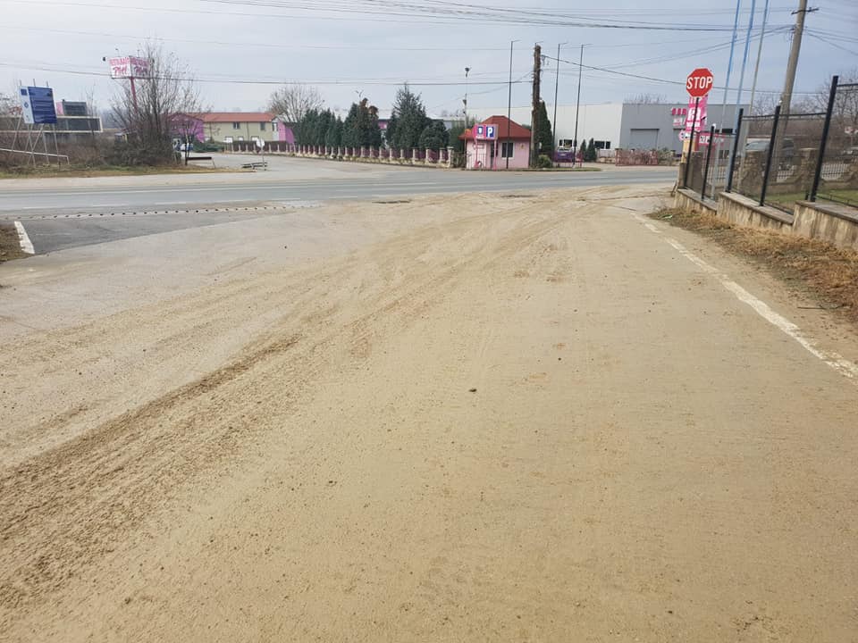 „Stimați șoferi! Vă recomand să circulați cu mare atenție pe DN 7 Arad-Deva. La ieșirea din cariera de la Radna s-a acumulat un strat de noroi pe carosabil , noroi care este foarte alunecos. Cu acest prilej solicit Poliției Rutiere din județul Arad să ia măsurile ce se impun împotriva celor ce pun în pericol siguranța traficului și viețile oamenilor. Este inadmisibil ca la ieșirea din șantiere să nu existe o zona speciala unde sa fie spălate roțile utilajelor ce pătrund pe drumul național, situație de altfel întâlnită și în vecinătatea șantierelor din municipiu Arad”, este avertismentul postat pe Facebook de Florica Ana.