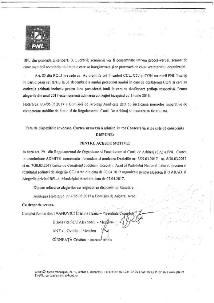 Un răspuns a venit chiar de la președintele Ludovc Orban, prezent zilele trecute la Arad. Acesta i-a reproșat lui Gheorghe Falcă plecarea deputatului Eusebiu Pistru din partid. Falcă a replicat, însă, amintindu-i lui Orban că el a fost cel care l-a încurajat pe Pistru să lupte împotriva sa la alegerile pentru funcția de președinte al PNL Arad. Și așa a și fost, dacă ne aducem bine aminte, în primă fază centrul admițând (vezi jos!) contestația lui Pistru și amenințând cu invalidarea alegerilor. Că șefii liberali de la București au întors-o, ulterior, ca la Ploiești, e de notorietate, determinând prind comportamentul lor plecarea deputatului Eusebiu Pistru din PNL. Deci, vina e împărțită, oricât ar încerca acum Orban să arate cu degetul doar spre Gheorghe Falcă. Cel care, să fim serioși, are și el partea sa de vină: Să nu uităm cum a câștigat alegerile interne din filială și, de asemenea, cum i-a îndepărtat pe mulți din partid. Ne vine în minte Igaș, de exemplu, că de el se vor lega niște surprize, cât de curând! Cel puțin așa zice gura lumii slobodă!