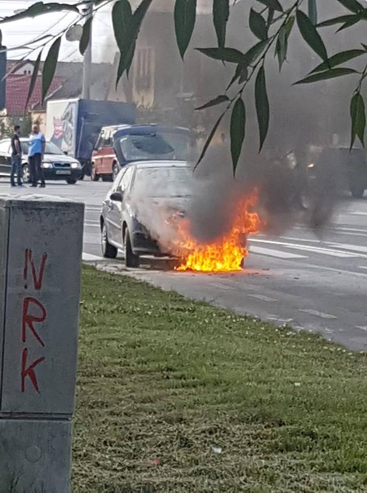 O maşină a ars ca o torţă în această dimineaţă în municipiul Arad.