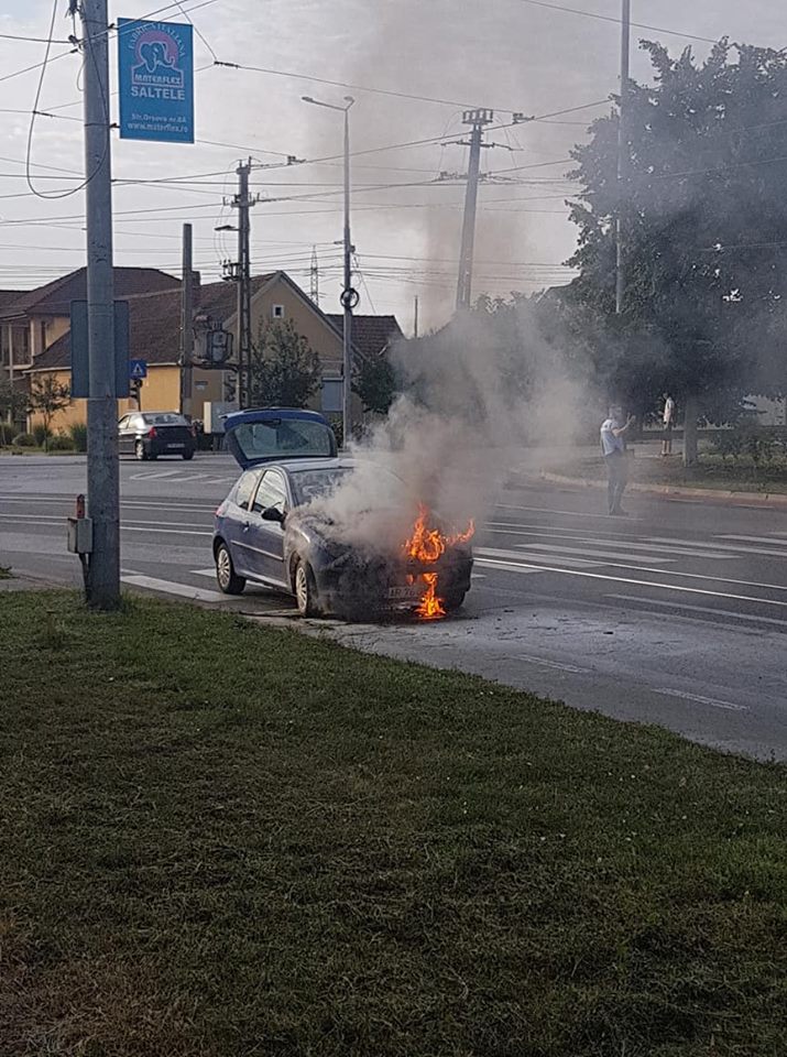 Potrivit Inspectoratului pentru Situaţii de Urgenţă, maşina ars la intersecţia străzilor Voinicilor şi Renaşterii, din Micălaca.