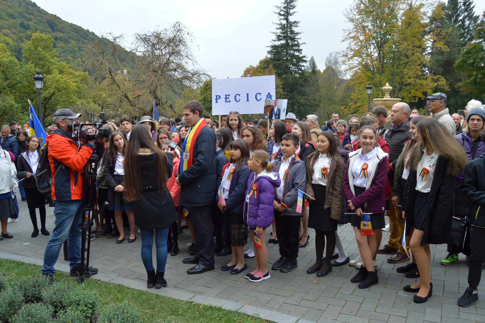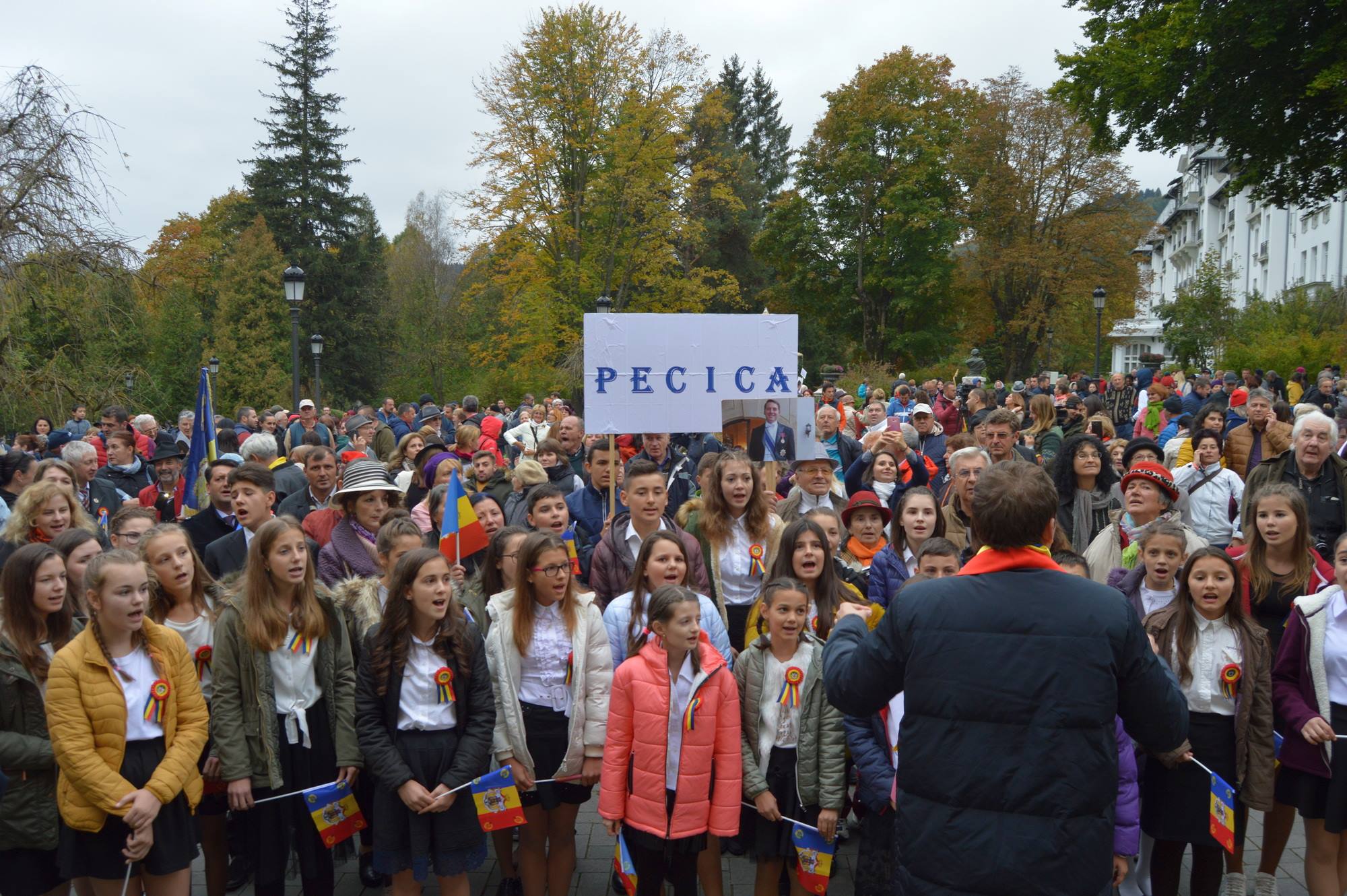 Simpatizanții prezenți la Sinaia au cântat cu corul, după care au ascultat și filmat elevii pecicani care au interpetat și alte cântece: „Luncile s-au deșteptat” și „Rapsodia România nr. 1”, ca parte a unui scurt recital pregătit sub îndrumarea dirijorului Alexandru Zaharia.