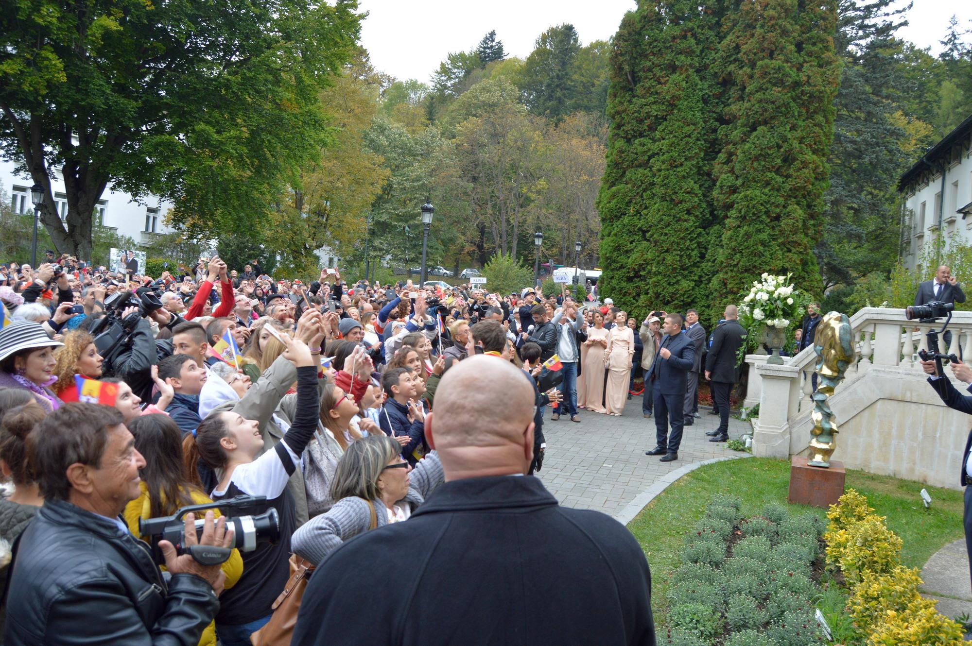 La scurt timp după sosirea la Cazinou, Alteța Sa Regală Principele Nicolae și soția sa, Alina, au ieșit în balcon pentru a saluta cele câteva sute de persoane adunate să îi felicite, moment în care elevii pecicani au cântat „Imnul Regal” și „La mulți ani”.