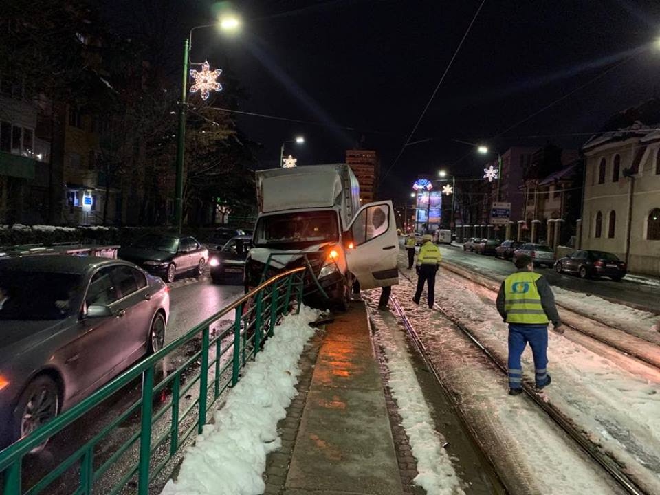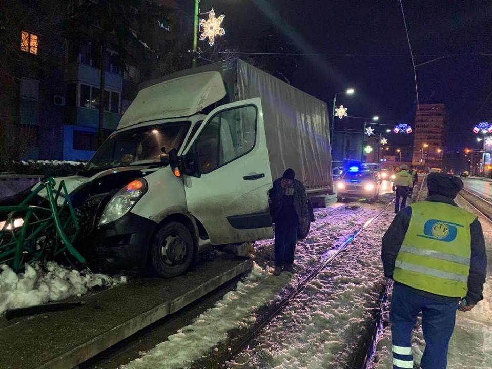 O camionetă a distrus, aseară, o stație de tramvai de pe Calea Romanilor.
