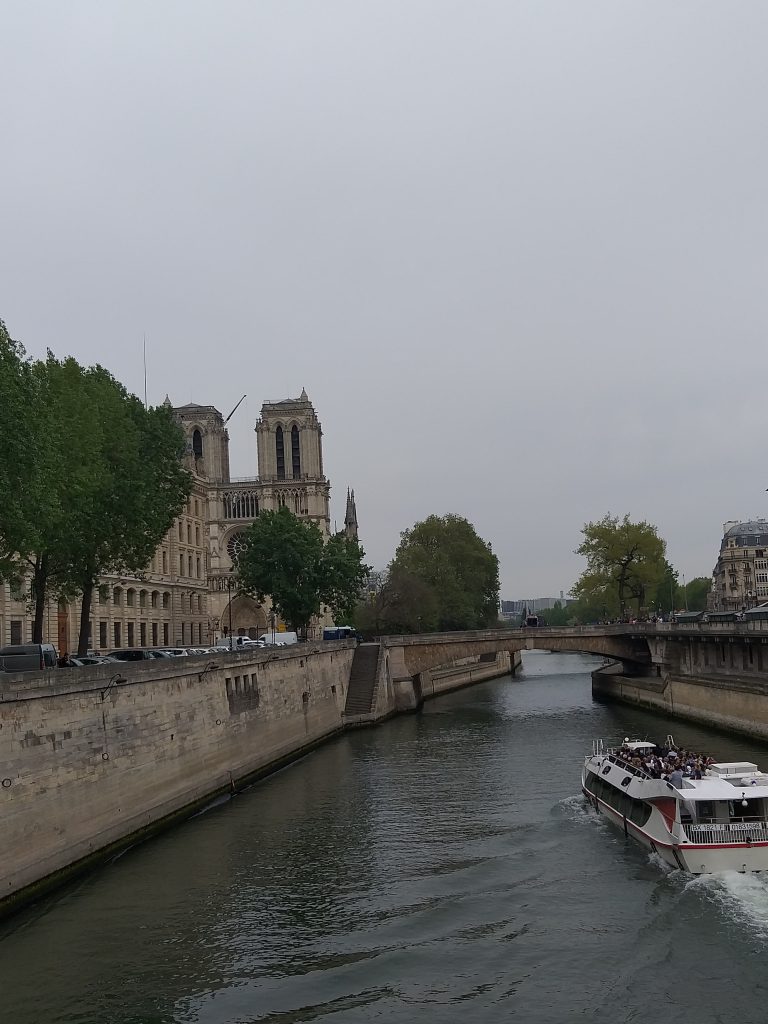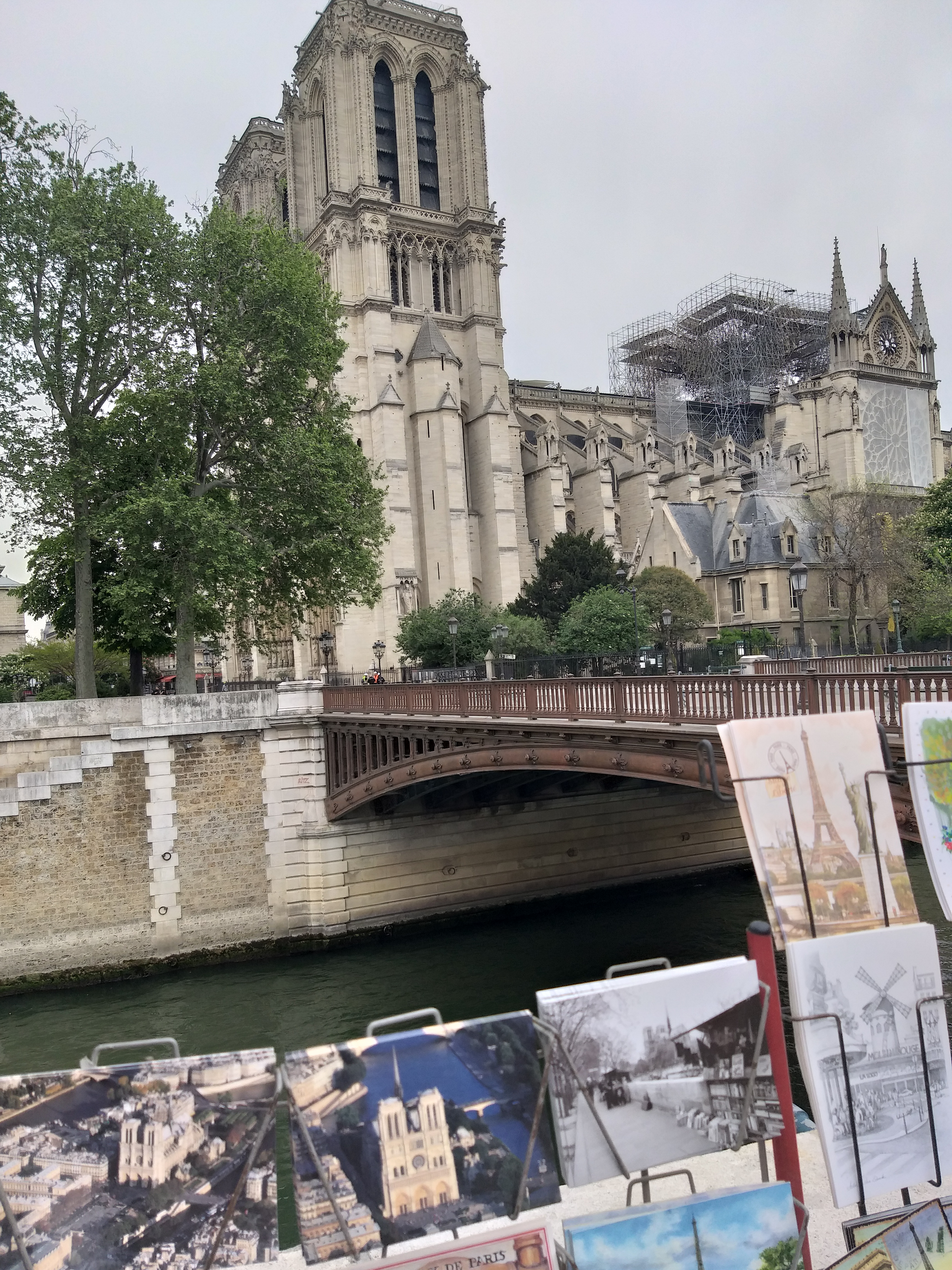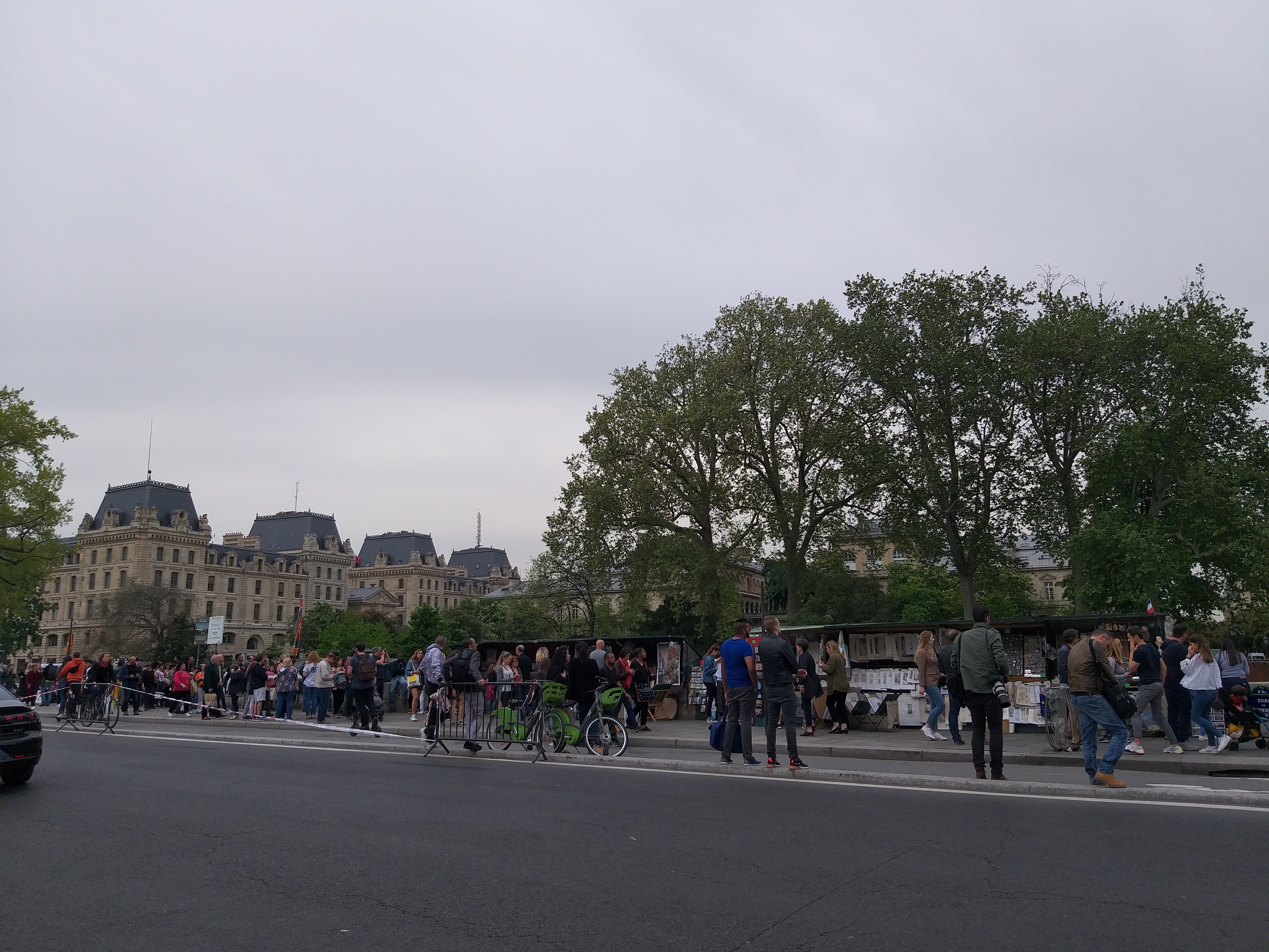 Turiști în număr foarte mare se plimbă pe malul Senei și se înghesuie să facă poze. Printre tarabele cu picturi, suveniruri și cărți, se strecurau să vadă cât mai bine catedrala.