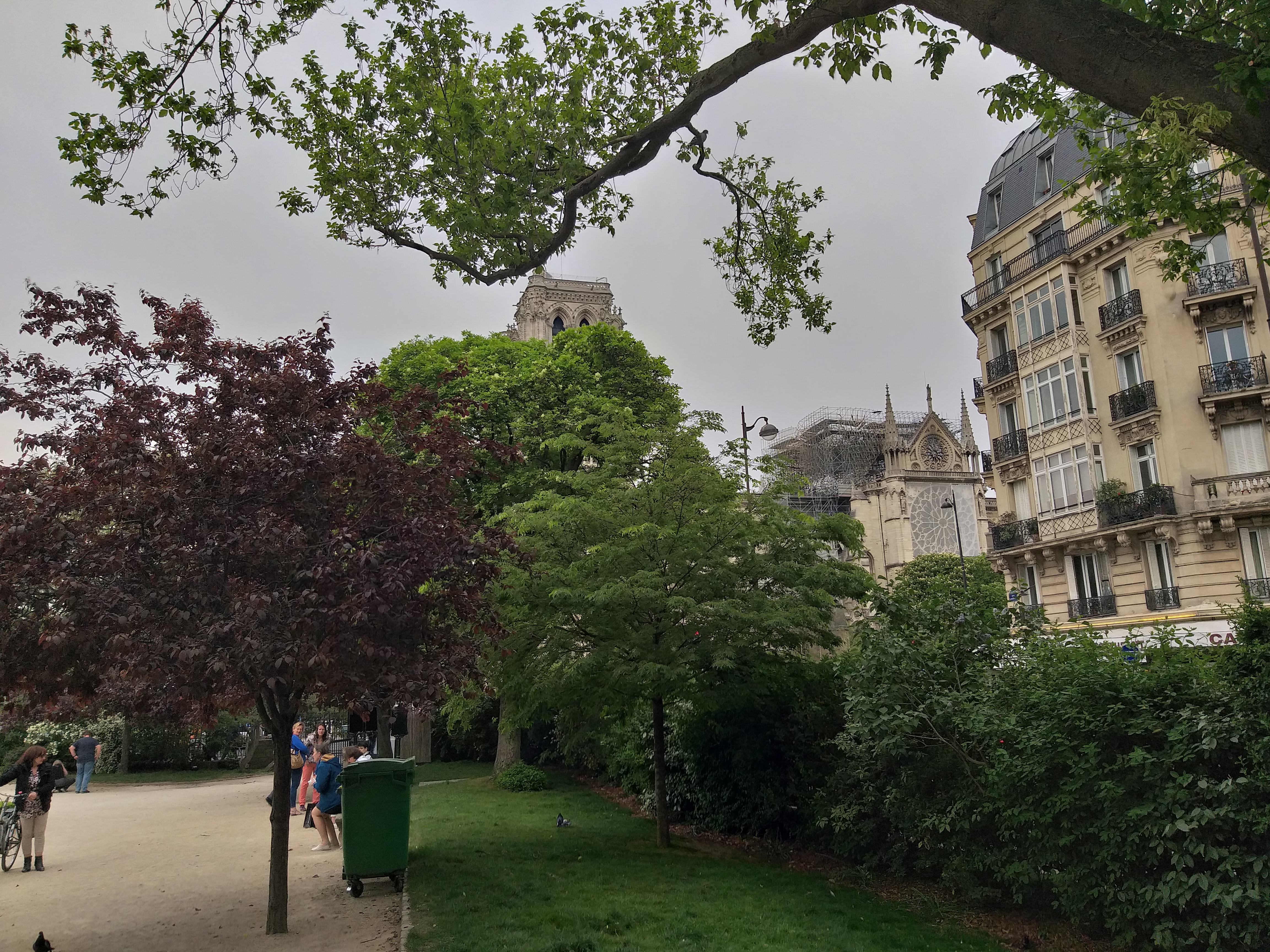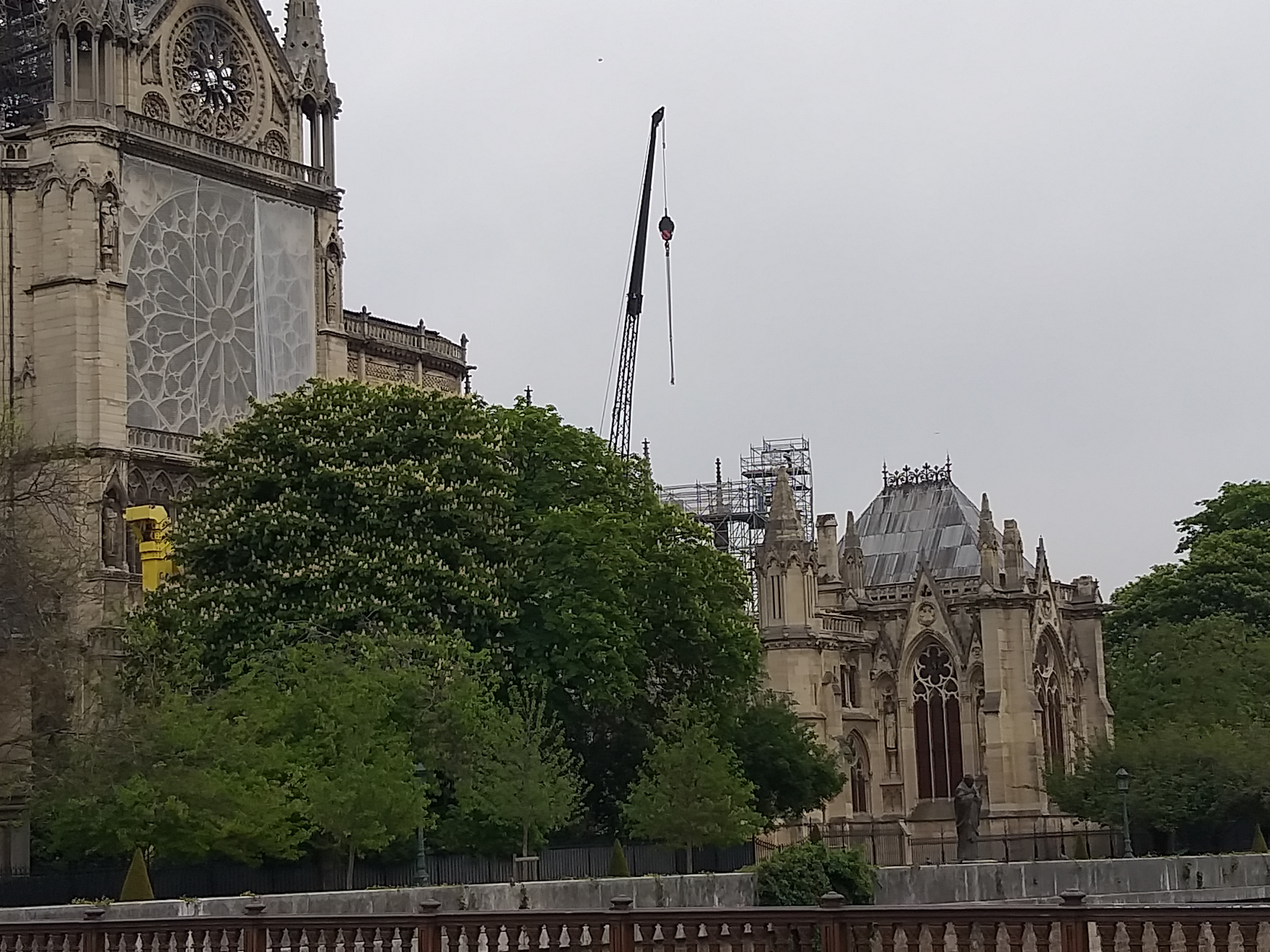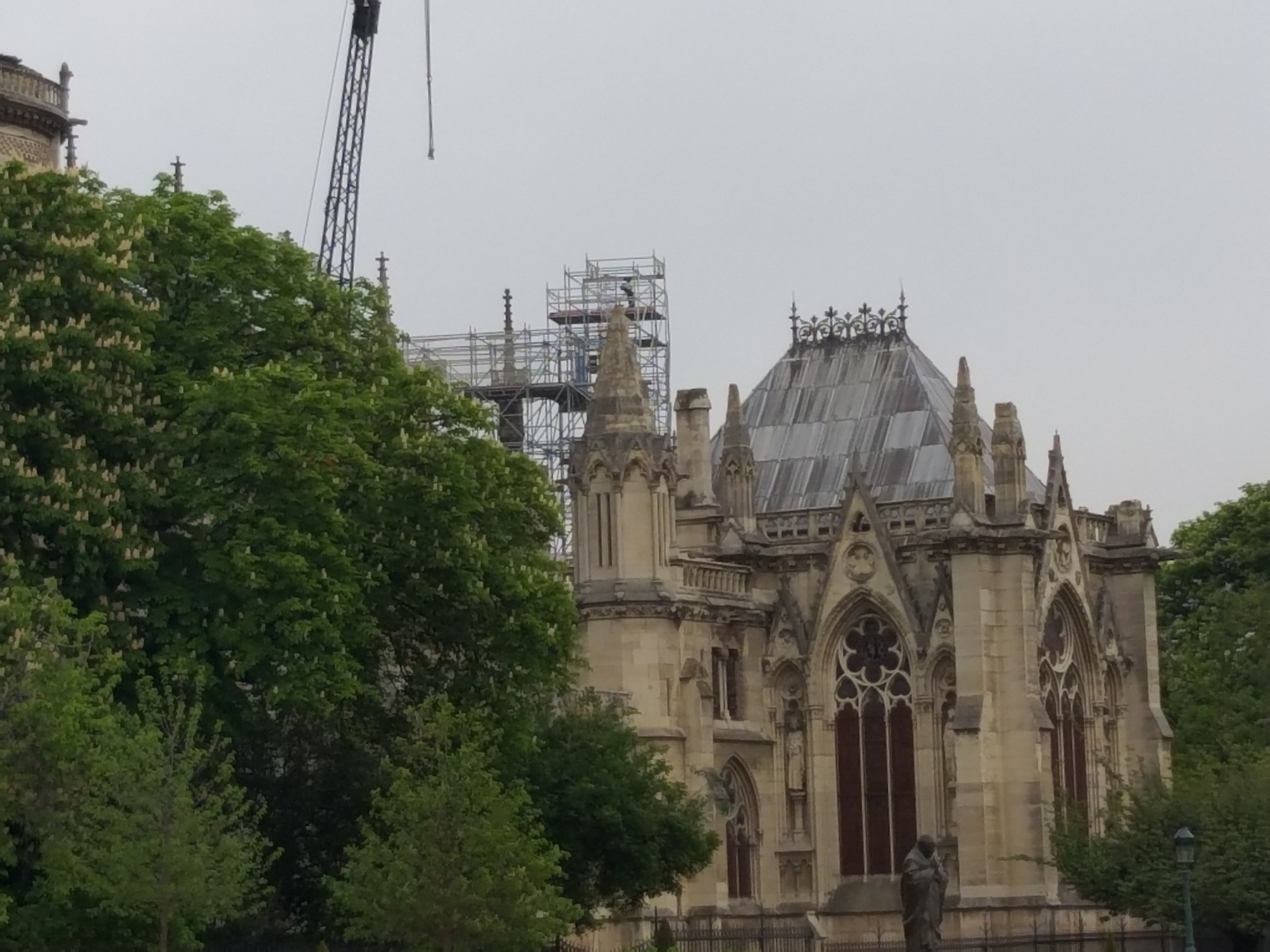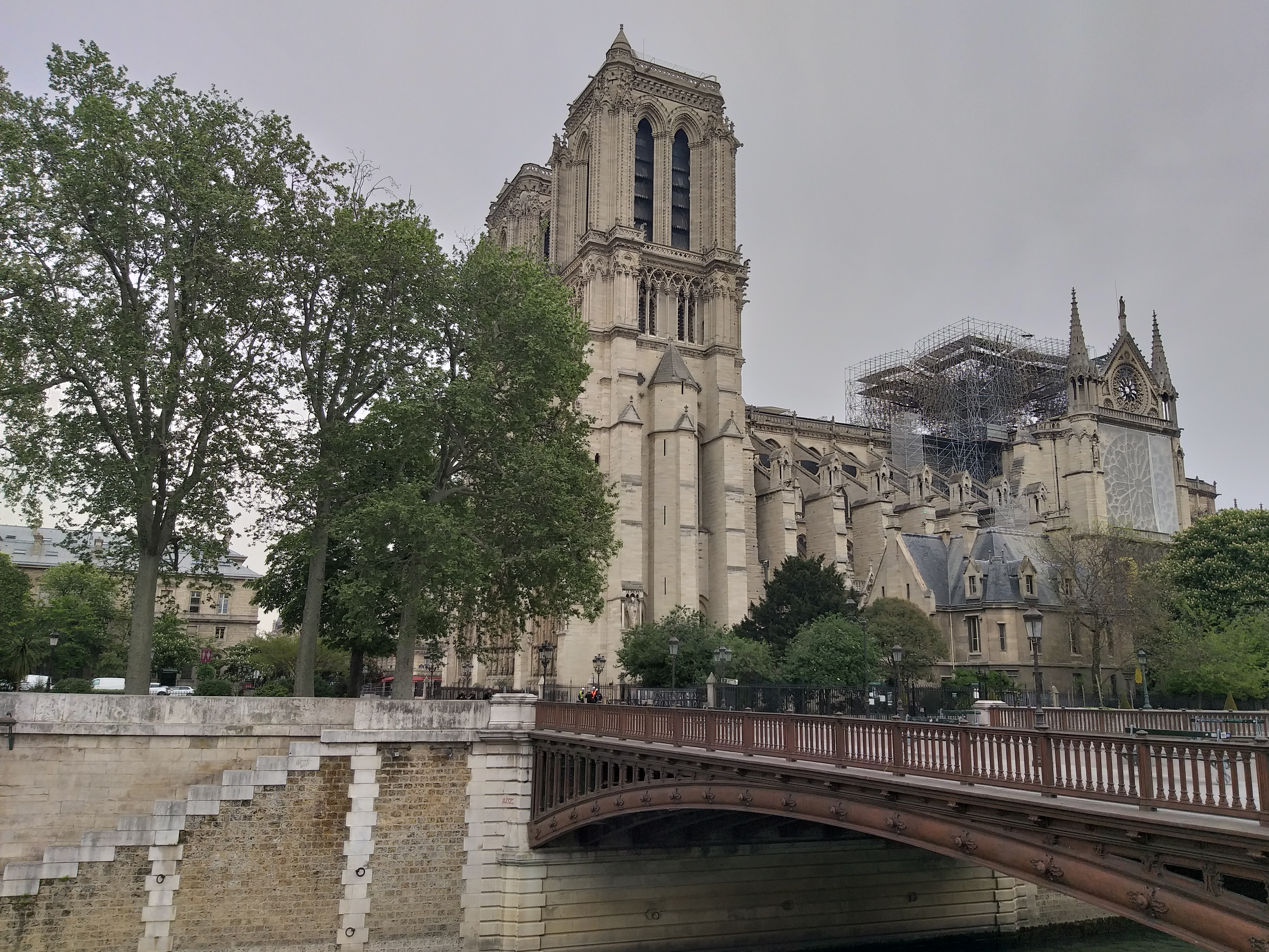 Din față, nu se observă aproape nimic. Evident, lipsește turla, dar în rest, din fericire, catedrala e în picioare. Când te apropii însă, ajungi în partea laterală și vezi urmările incendiului. În loc de acoperiș e plin de schele și se văd „rănile” lăsate de foc. Deși era multă lume, atmosfera era destul de apăsătoare, iar oamenii nu prea zâmbeau…