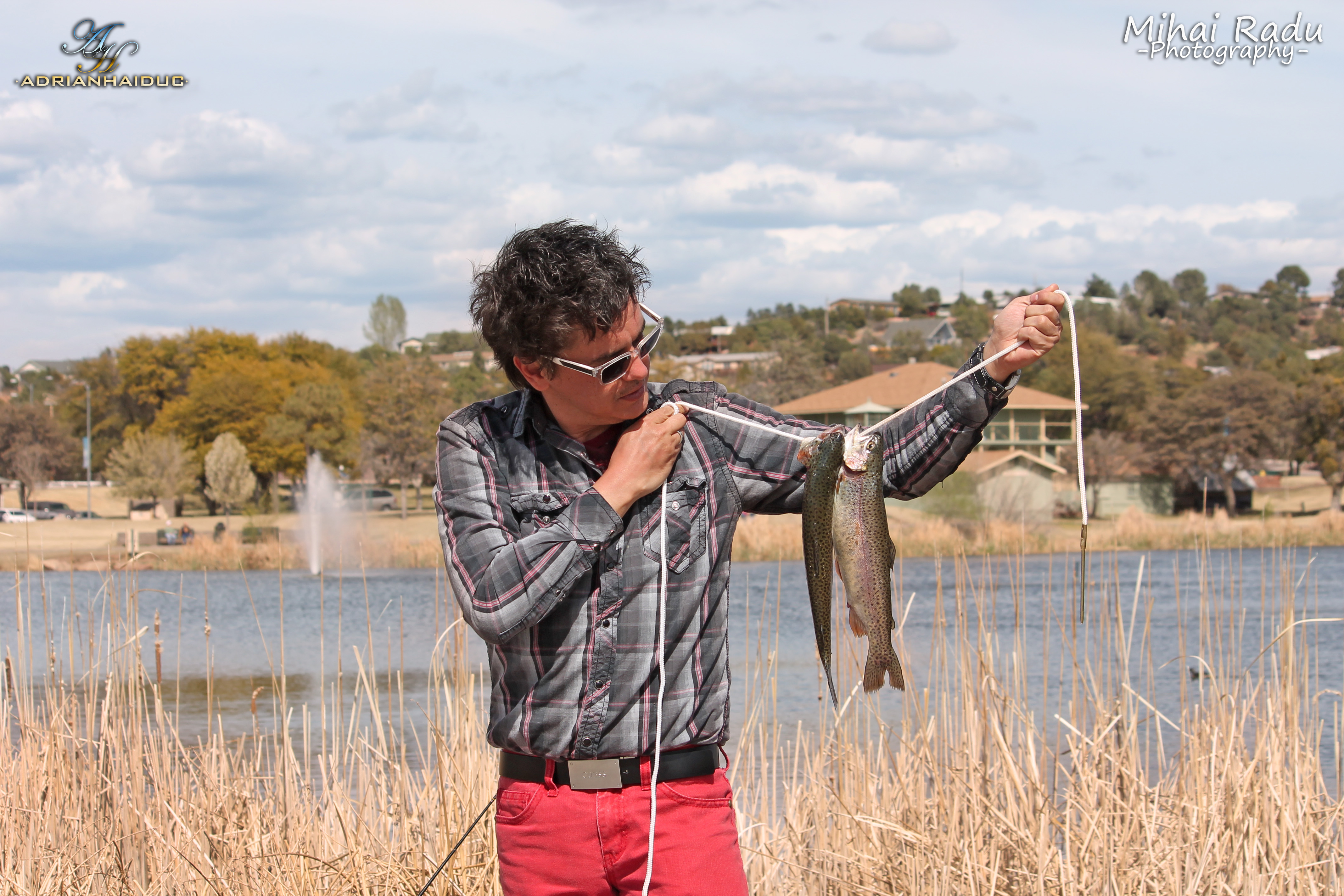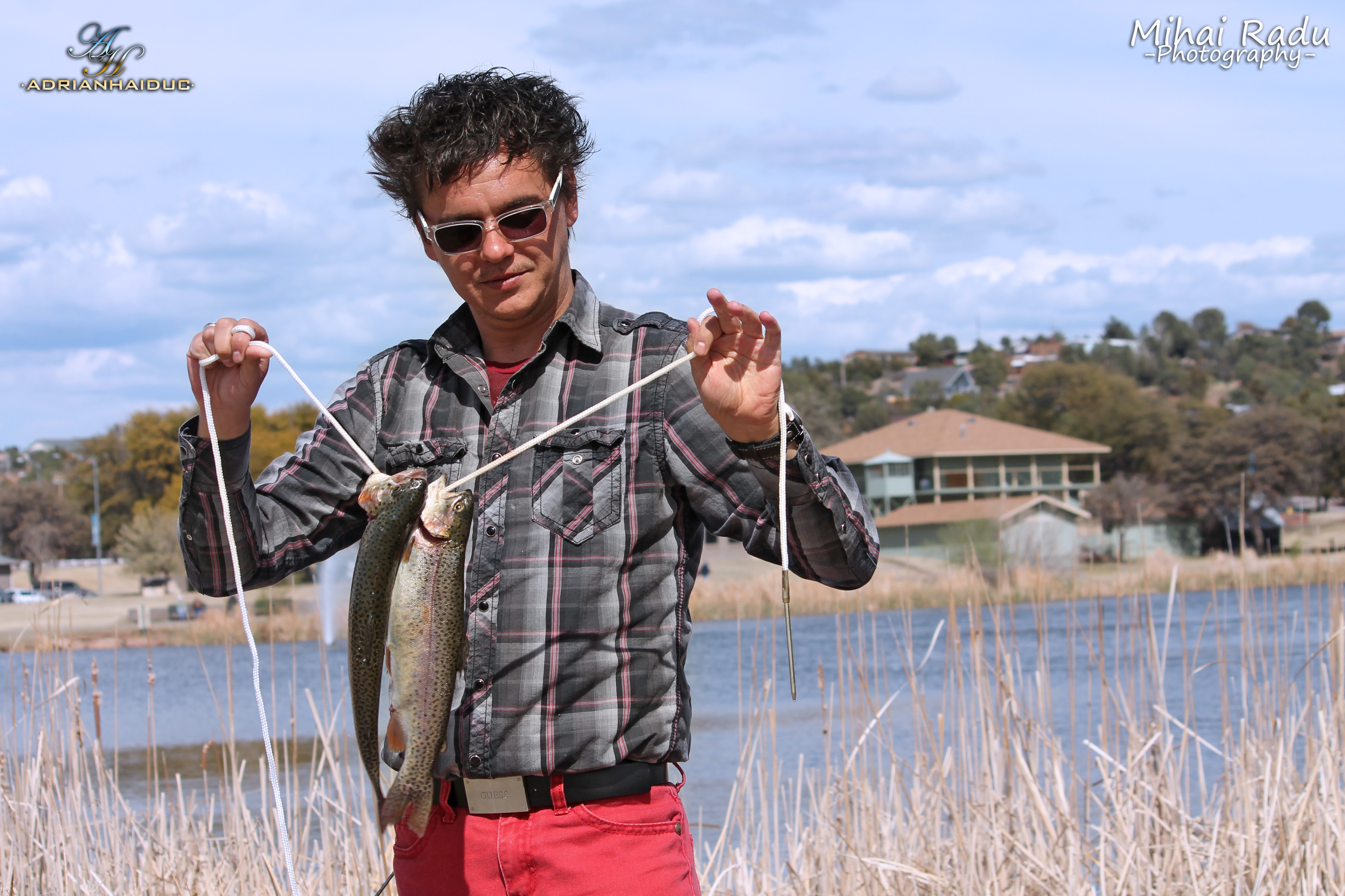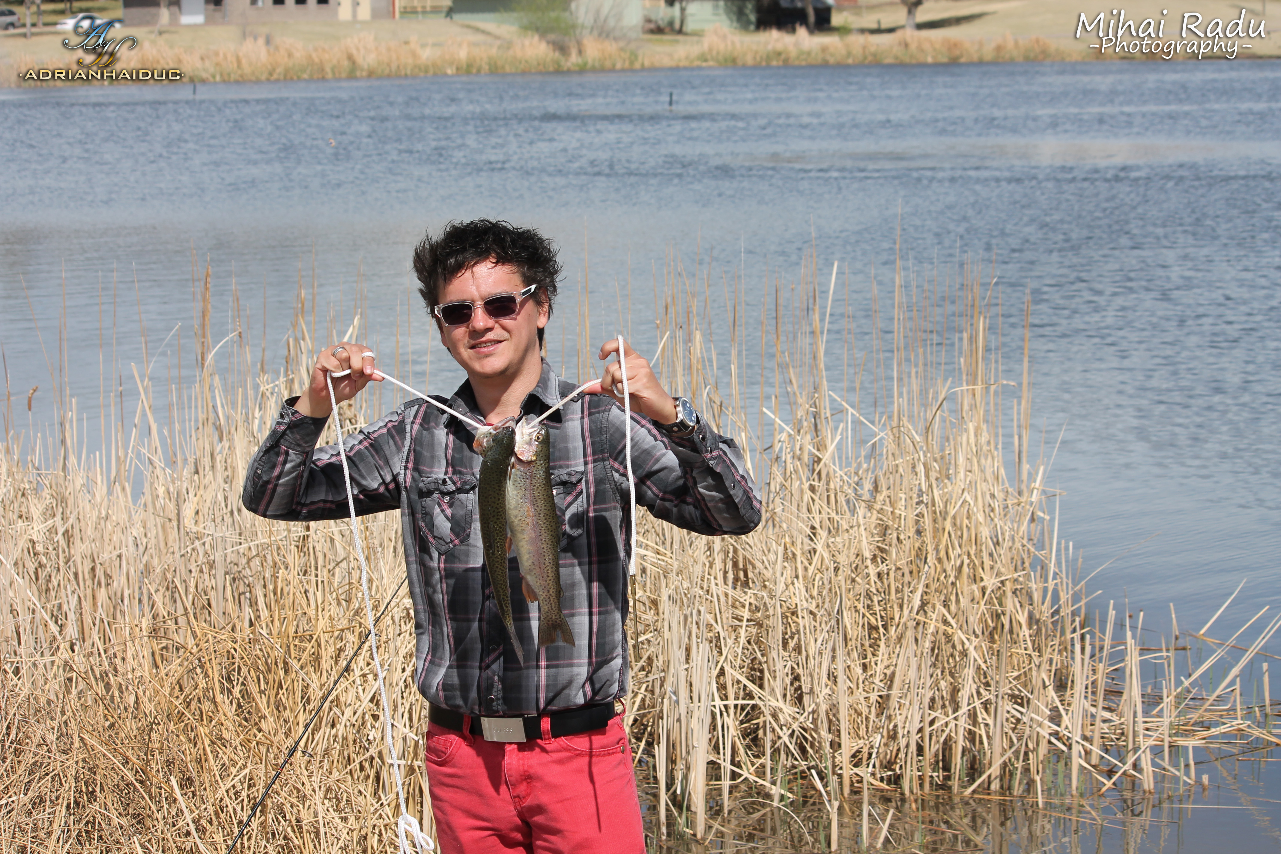 Și pentru ca să-l credem, și-a făcut poze chiar și cu unul dintre păstrăvii fie prinși din lac, fie luat de pe la băștinași ori de pe la un magazin din zonă…