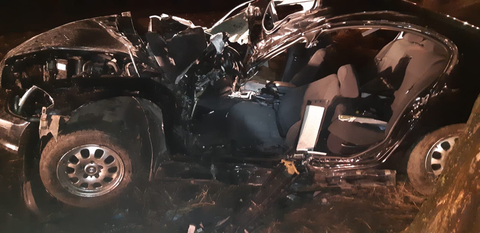 Acesta a rămas încarcerat între fiarele contorsionate ale maşinii, fiind scos de echipajele de intervenţie.