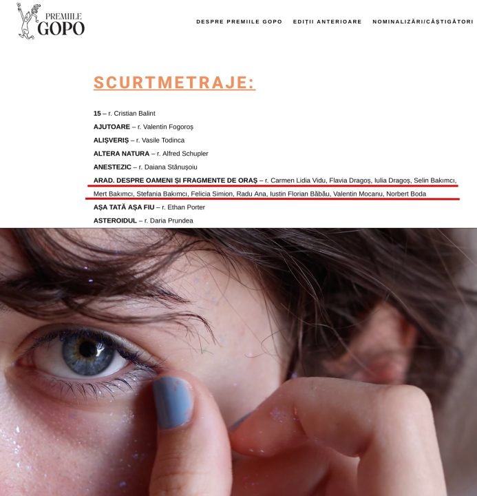 Hub Cultural mARTA anunță că scurtmetrajul „ARAD. Despre oameni și fragmente de oraș” se află pe lista filmelor eligibile pentru nominalizare la prestigioasele Premiile Gopo 2026.