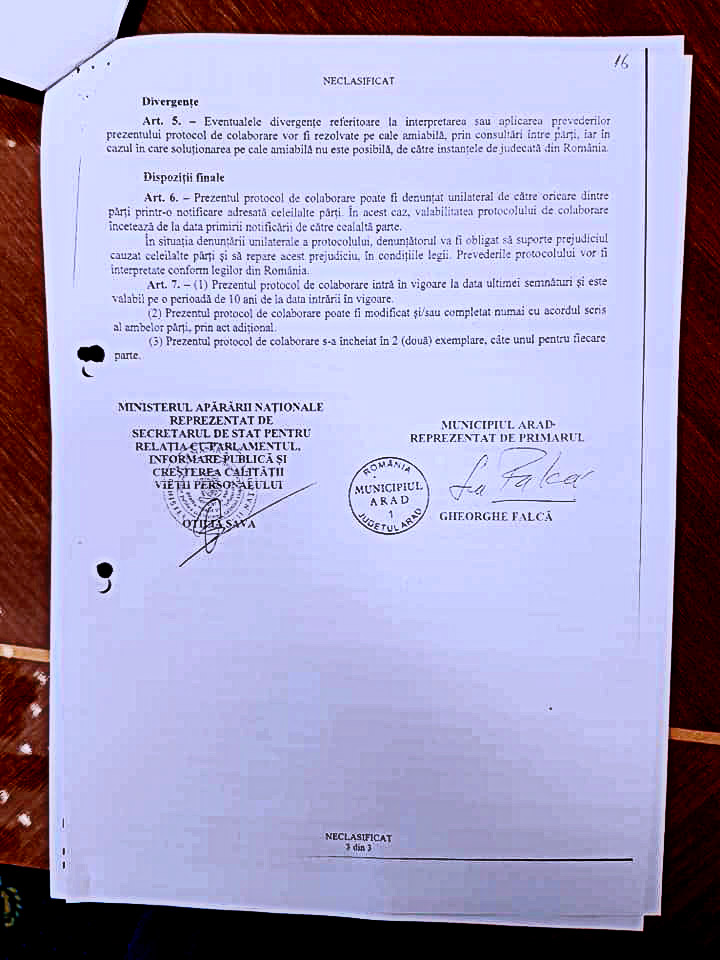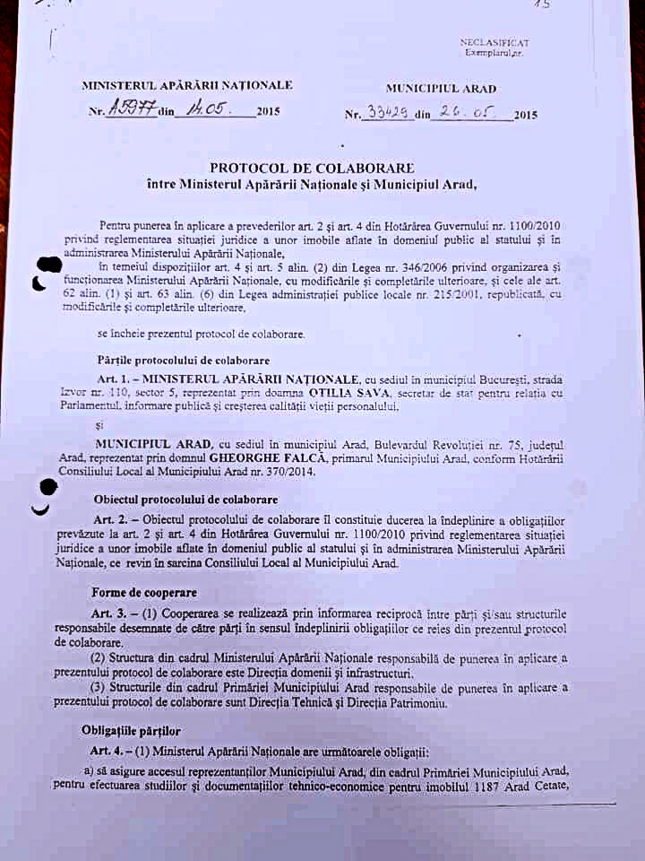 Senatorul PSD a prezentat, cu acte, şi situația protocolului dintre Primăria Aradului şi Ministerul Apărării Naționale.